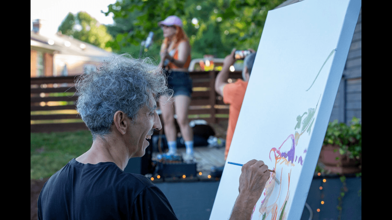 I mostly draw. I draw on my sketchbook, and also on walls.. No different]ce on the size, for it is a dance of lines that grow by themselves. I get surprised with the scenes and characters that come out of my hands. Sometimes inspired by live music (I Love aw musicians!), or by a word, or a whole conversation. I create art that inspires others who had inspired it. Mutual always.