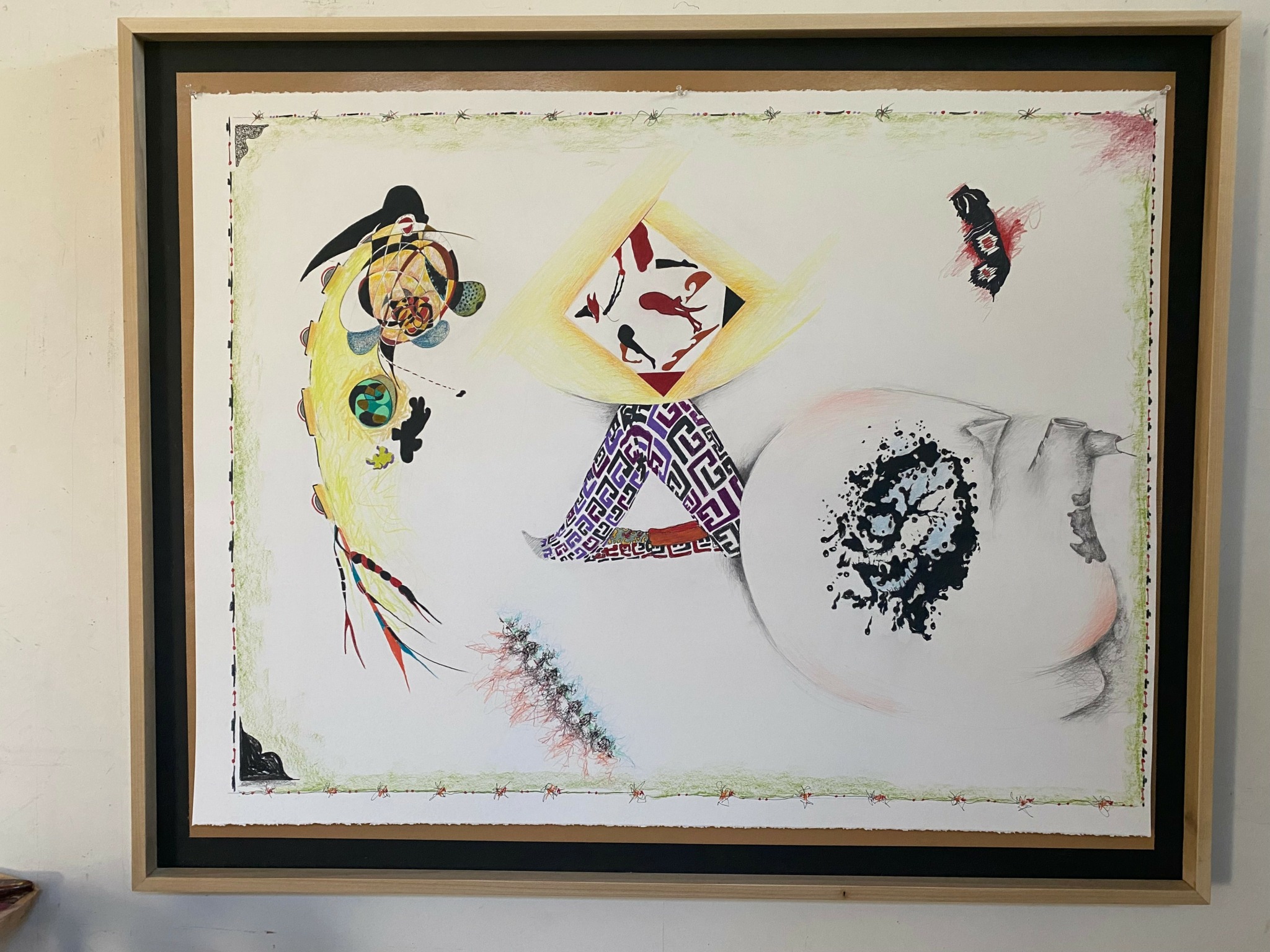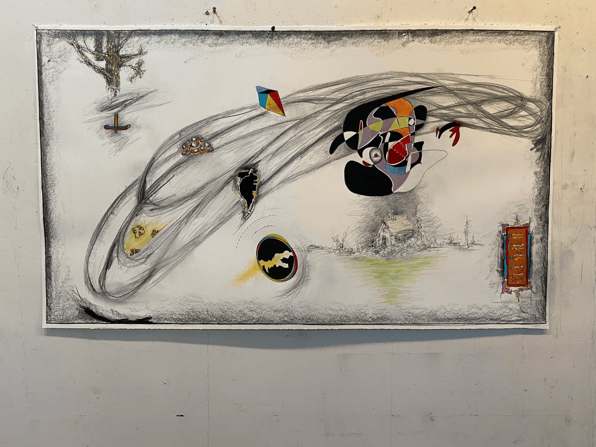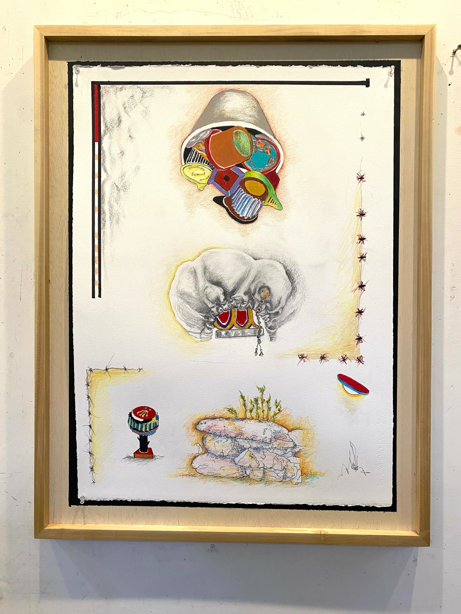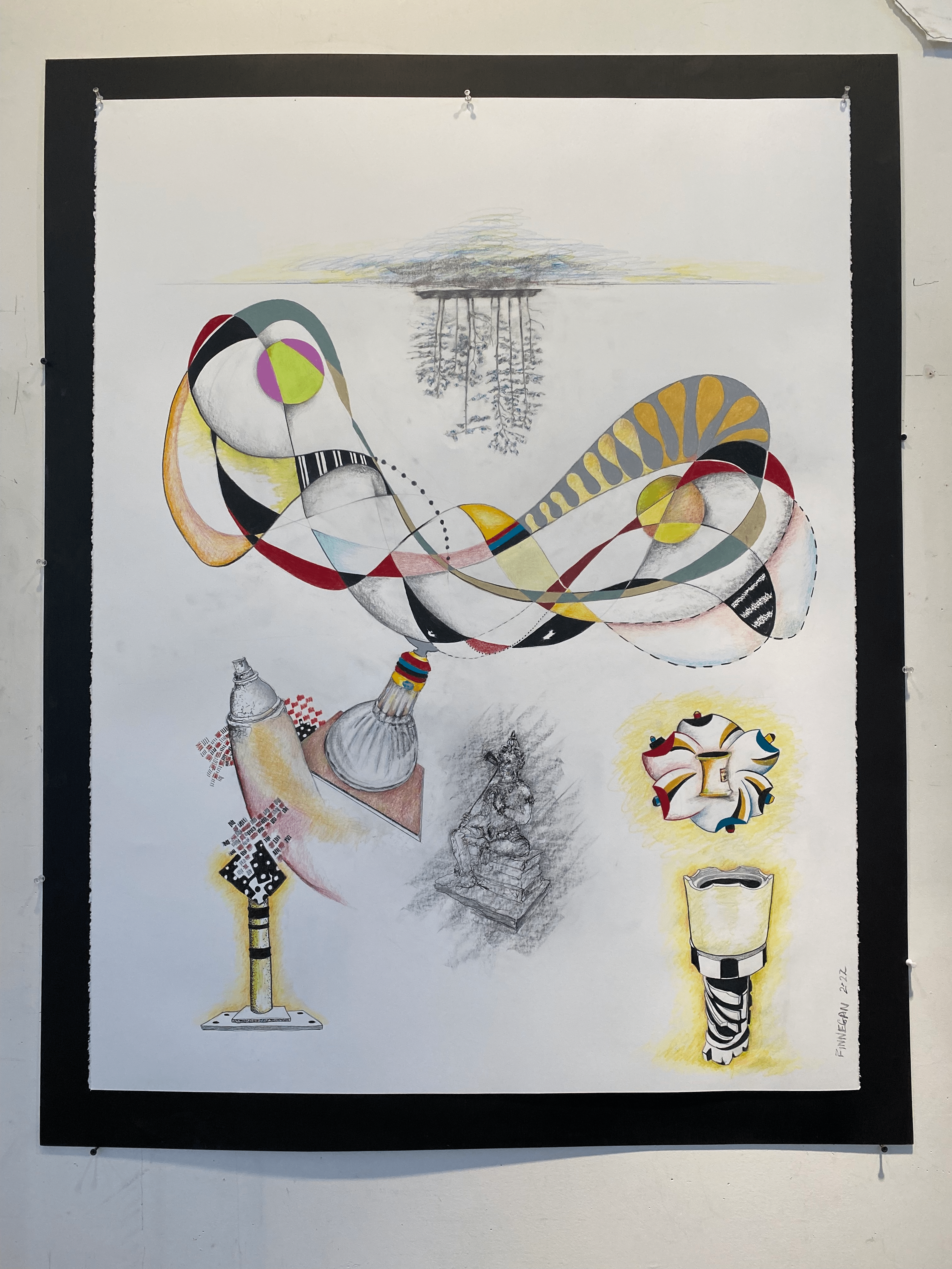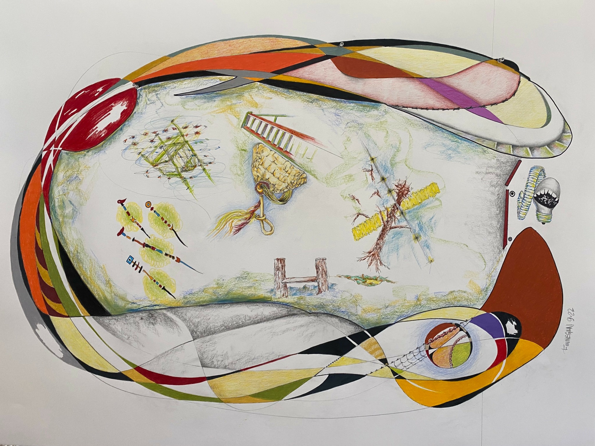 My work is about the human need to understand and give reason, purpose, order to our lives. Science, Medicine, religion, our everyday lives are affected by that desire. We all experience this. There is more that we don’t know than we know. Searching is what we are doing. My drawings, like life are made up of random images/experiences. In making this work I try to give unrelated image and shapes reason. I don’t have any preconceive narrative. The viewer has a a similar job of ordering that I had in the making. These drawings are primarily colored pencil. I like the fact that it can’t be erased