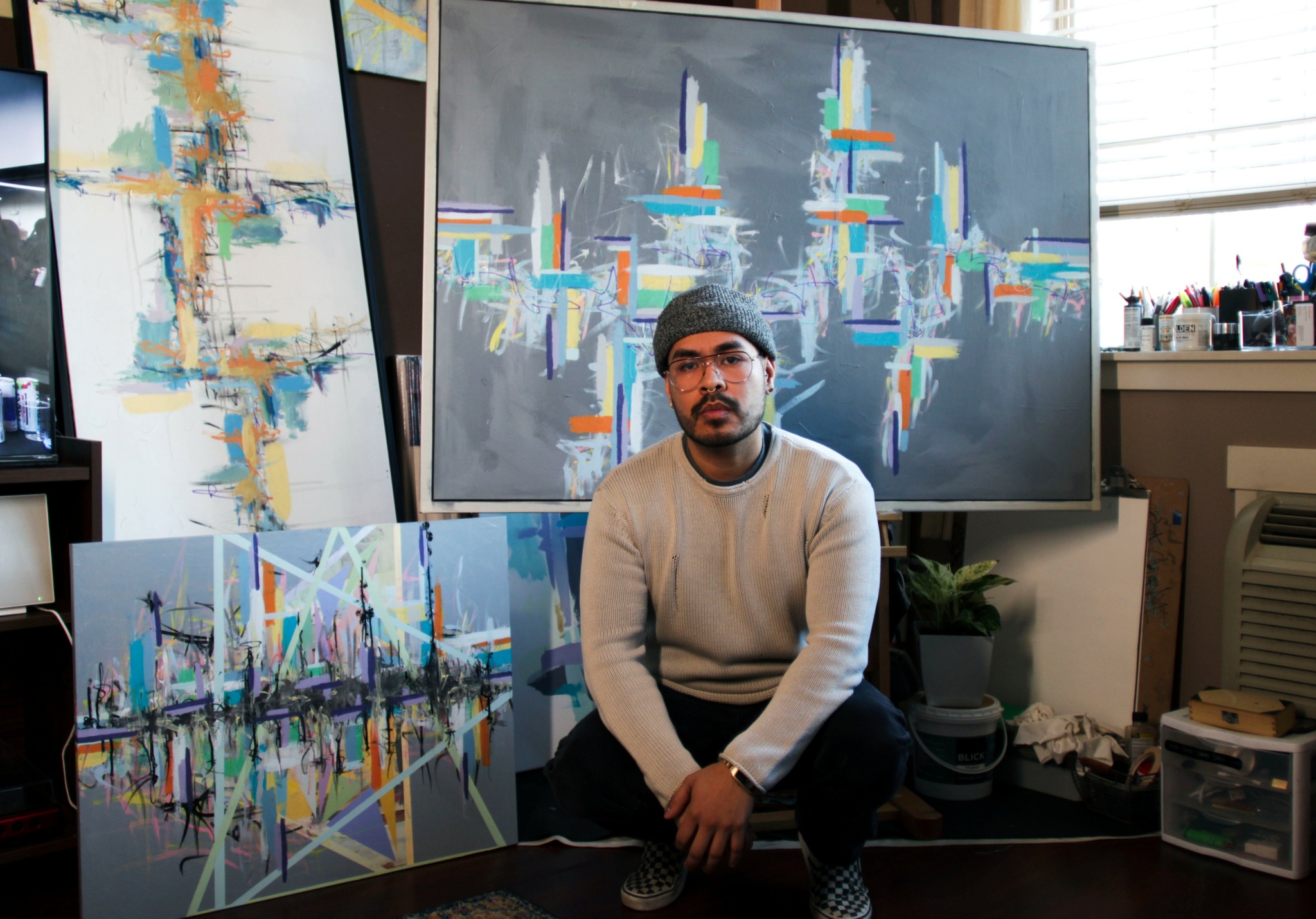 I am a Mexican abstract artist based in the PNW. I’ve always been a visual creative since I was a teenager, recently these past few years I’ve been developing my style when it comes to visual arts. Combining soft pastel colors with bold darker colors. My artwork is constantly changing, I like to think of my projects as a balance between chaos and calm.