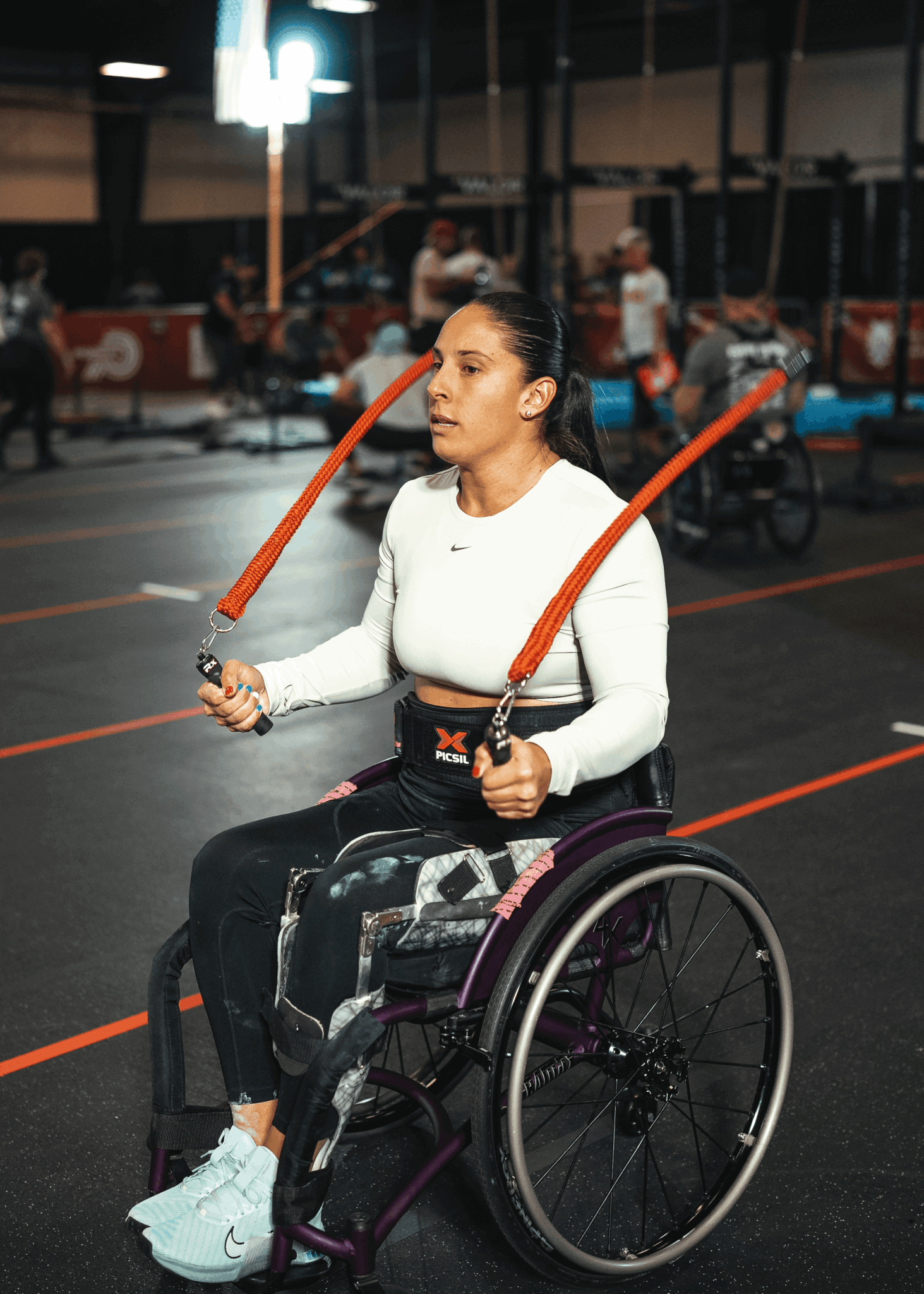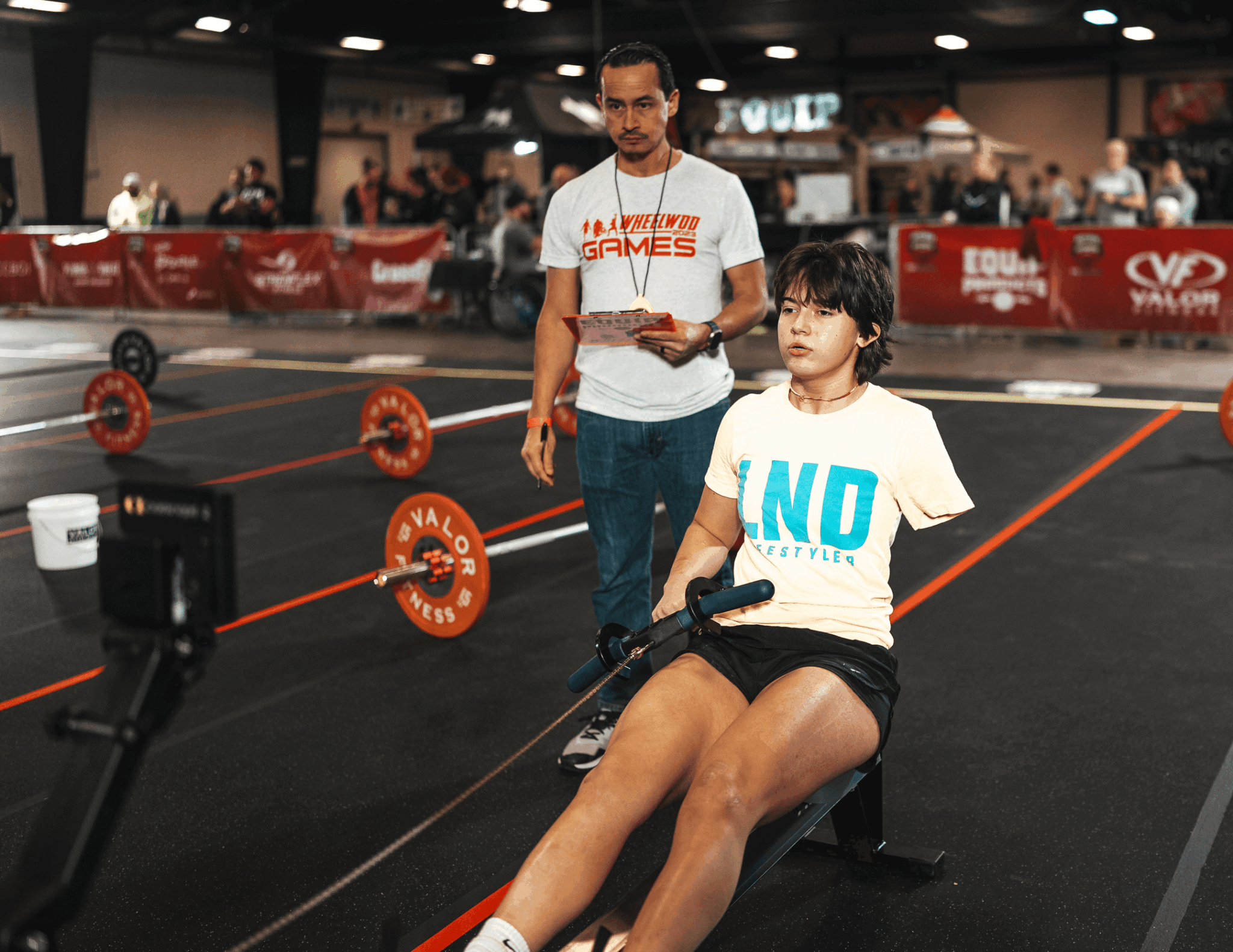 I was drawn to this group like a moth to a lightbulb. I wanted to know their story, what their lives were like after their injuries, and why they were at a CrossFit event. It turned out that most of them had done CrossFit before their injuries, and they wanted to stay connected and do what they could. Some were there for non-profits, and others were representing fitness brands.