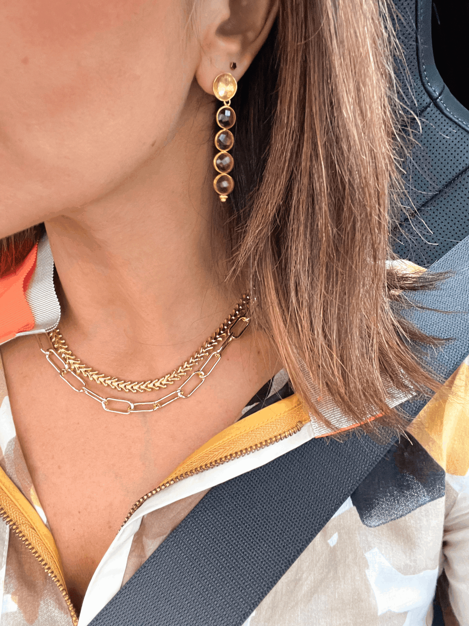 In 2003, I moved to Manhattan to complete my Ph.D but I decided to gain some experience being in NYC. I started working as a Fashion Buyer. Then, 4 years later, with the birth of my first son, I decided to pursue my passion in jewelry again and Avenue Chic saw the light. Avenue Chic is a virtual showroom for many designers from France, England, Brazil, Turkey, Lebanon, Venezuela… and of course the US. Many of our pieces are loved and worn by many celebrities from Halle Berry, Jennifer Lopez, Lady Gaga… to name a few. With Avenue Chic, everyone can accessorise like a celebrity. And my love for jewelry reignited and I created my first line in 2013. In 2020, I co created a Ready-to-Wear line with my father.