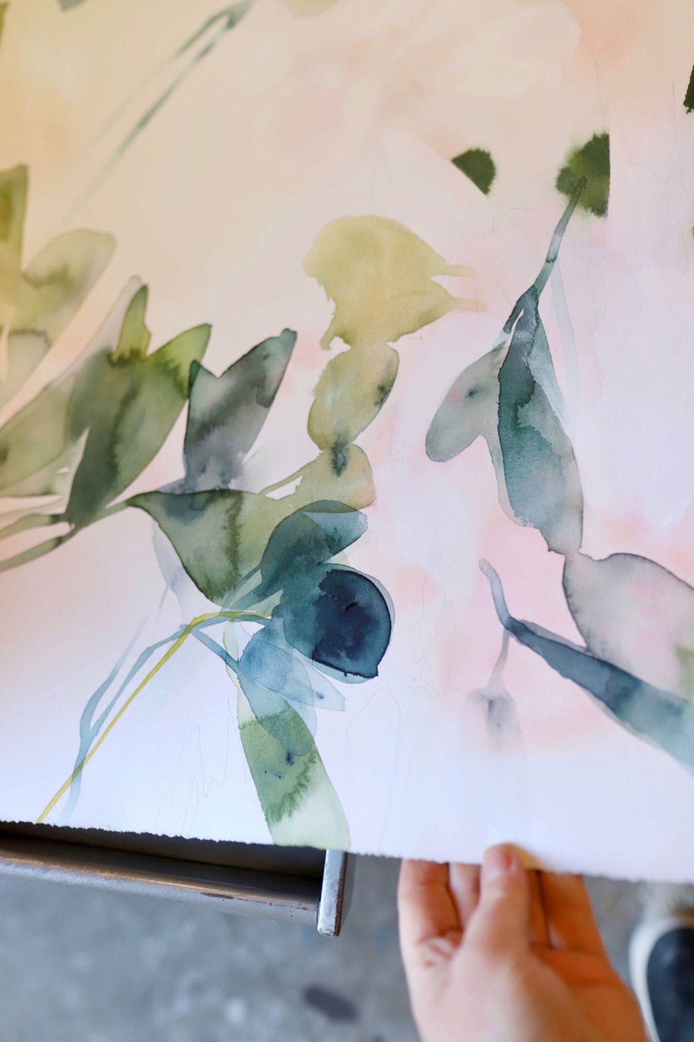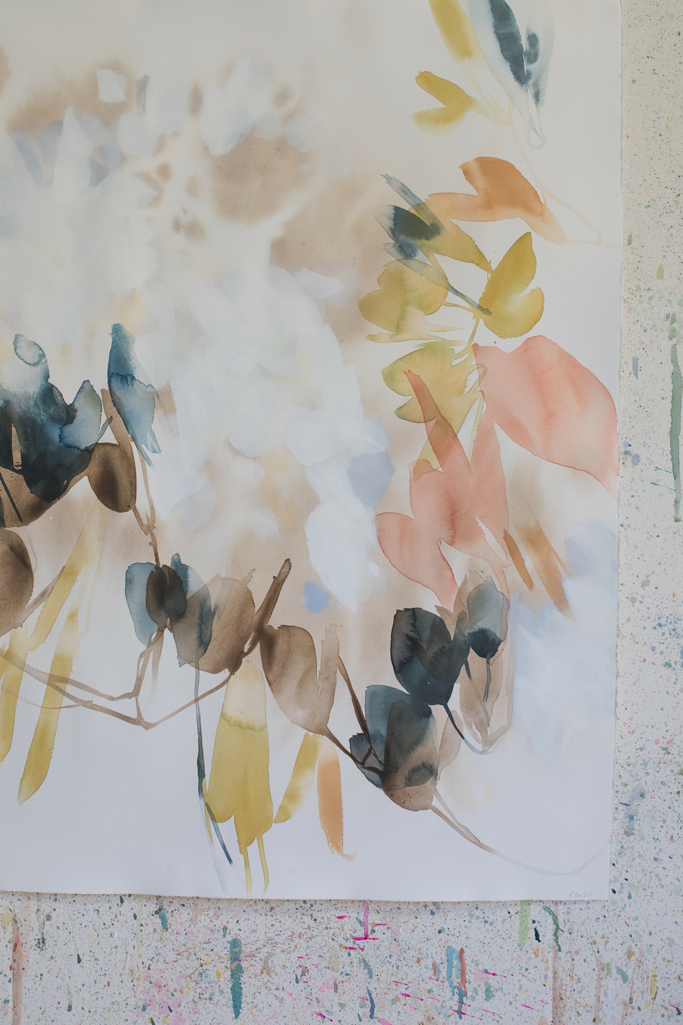 I create paintings on paper and canvas that are inspired by my direct experiences in nature. They serve has a memory of a place, and are created by building many layers of paint on a surface. I work intuitively, never planning out paintings, but rather adding color and shapes in order to create a sense of space within each piece. I think my work is known for it’s ethereal quality, sometimes a sense of lightness, or perhaps in the way time feels suspended. I play with opacity in my work, allowing layers to peek through in some areas, and get buried in others. I know a painting is done when it has its own spacial quality that a viewer can engage with. I’m also obsessed with color that is created when layers of colors interact.