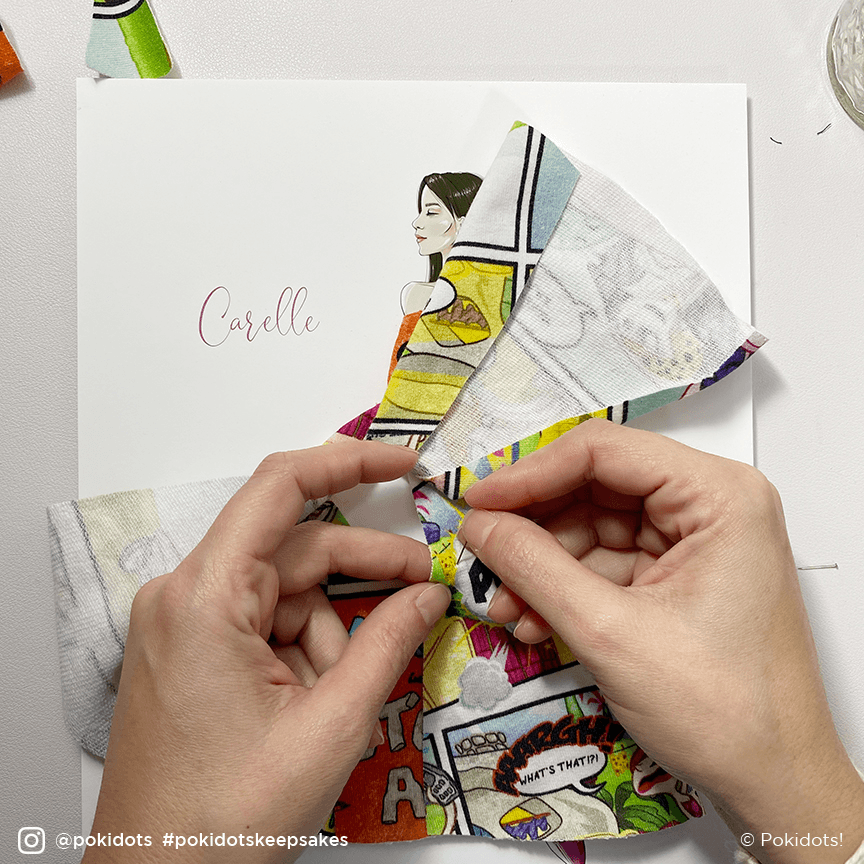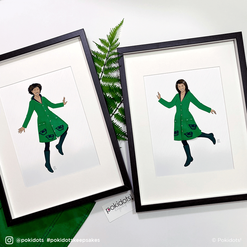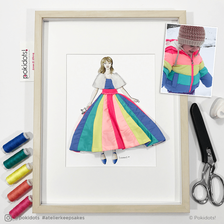 Fashion is also the foundation of Pokidots, which started in 2016 with the fashion keepsakes I created for my girls–by drawing them as I imagined them as adults, and dressing their illustrations with my favorite of their baby clothes. The custom fashion keepsakes have been the best seller keepsake since day 1, and they are also my favorite ones to create. Since then, Pokidots evolved substantially: I’ve offered more custom keepsakes styles, created a collection of DIY keepsakes to make at home, and added products that promote a meaningful and joyful family life such as the Christmas village Advent calendar set, guided journals for kids and parents, and wall calendars for the year. Pokidots products travel all around the world, spreading joy and positive vibes :)