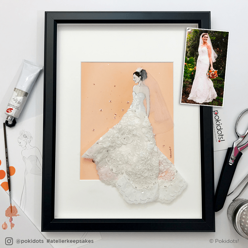 I think what sets my work apart from others is that I take items that are stored away and make a piece of art with them, one that you can actually hang and display, as opposed to another thing that will eventually end up back in storage. Another thing is that I am also an illustrator and I use those skills to make the keepsakes more beautiful and more customized.