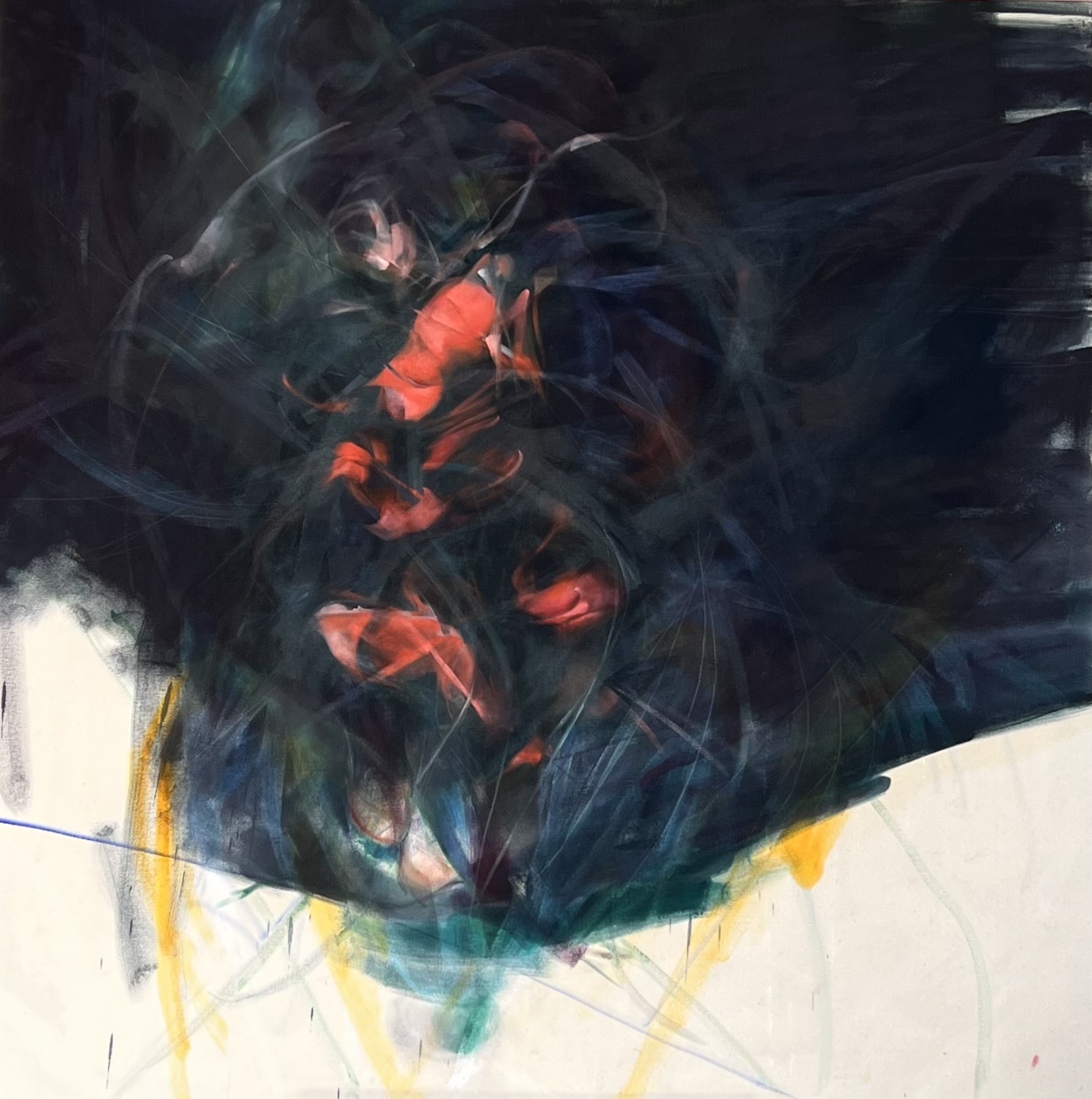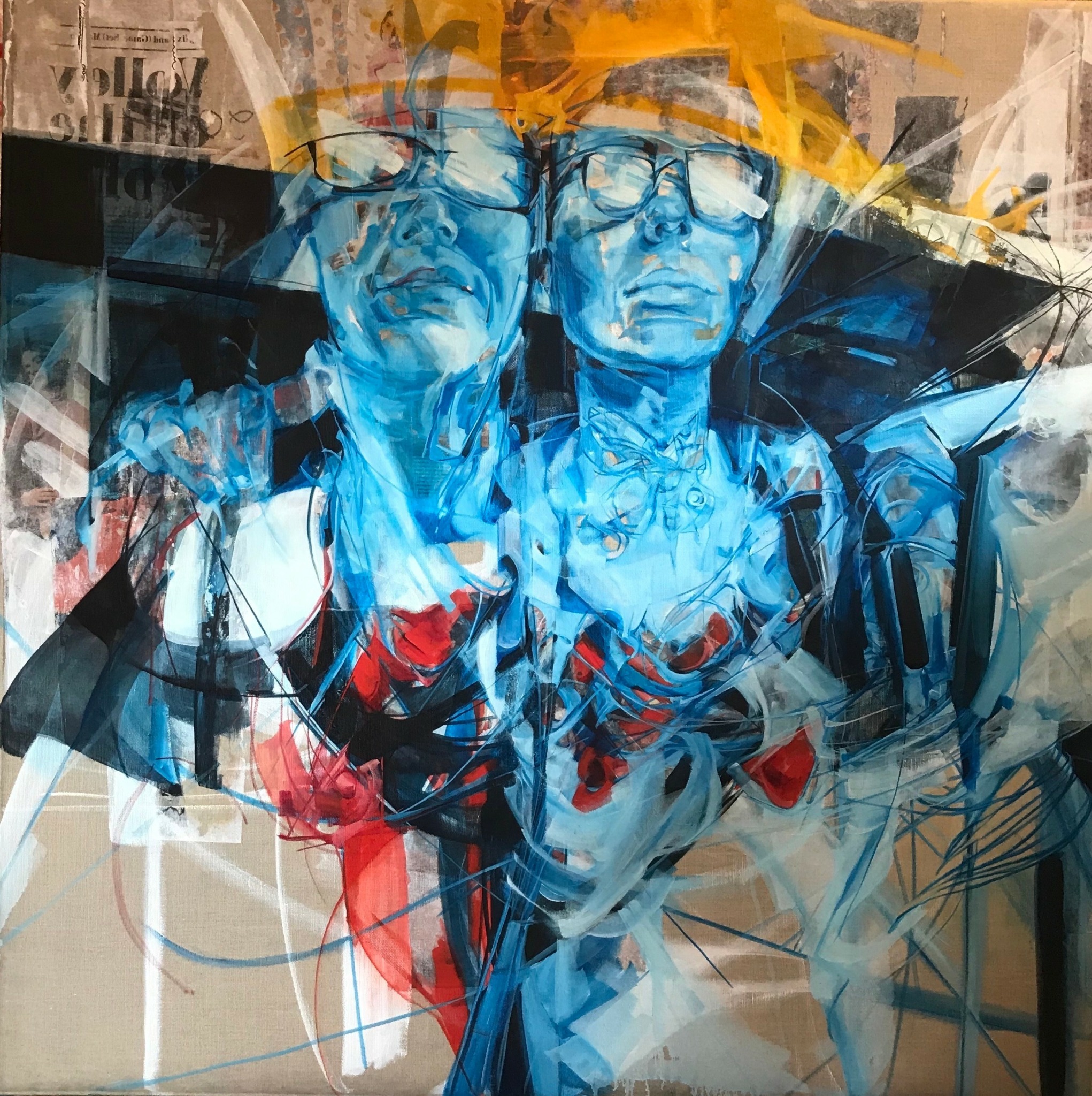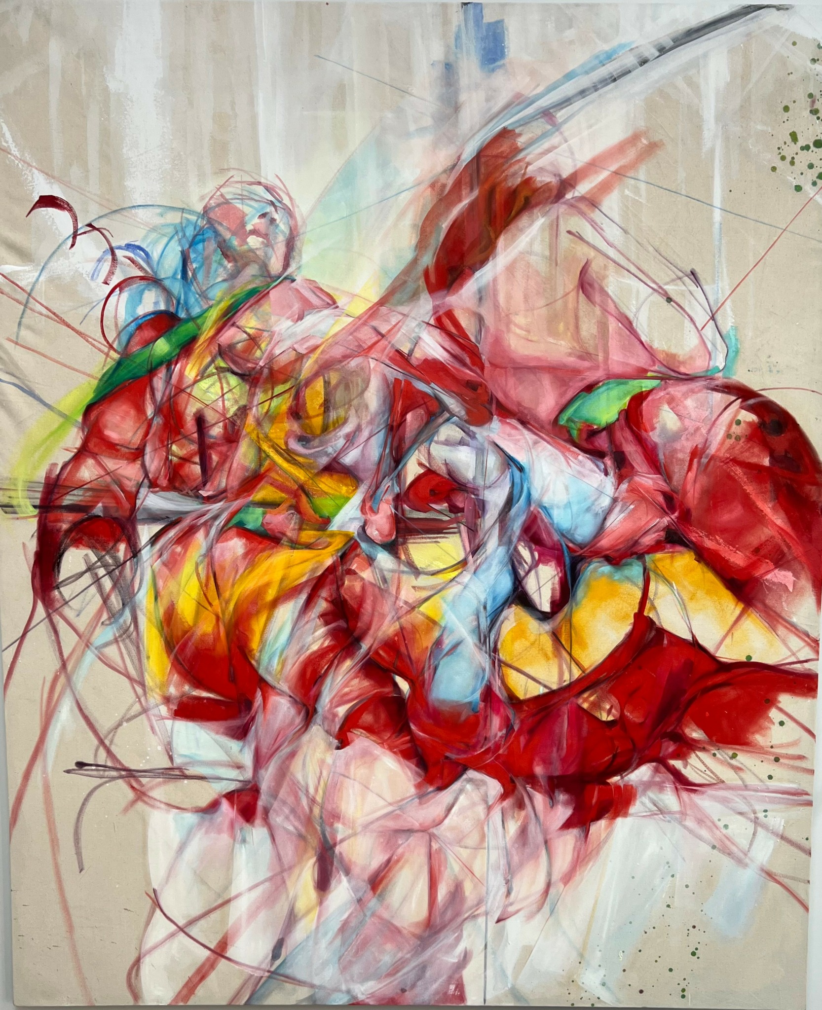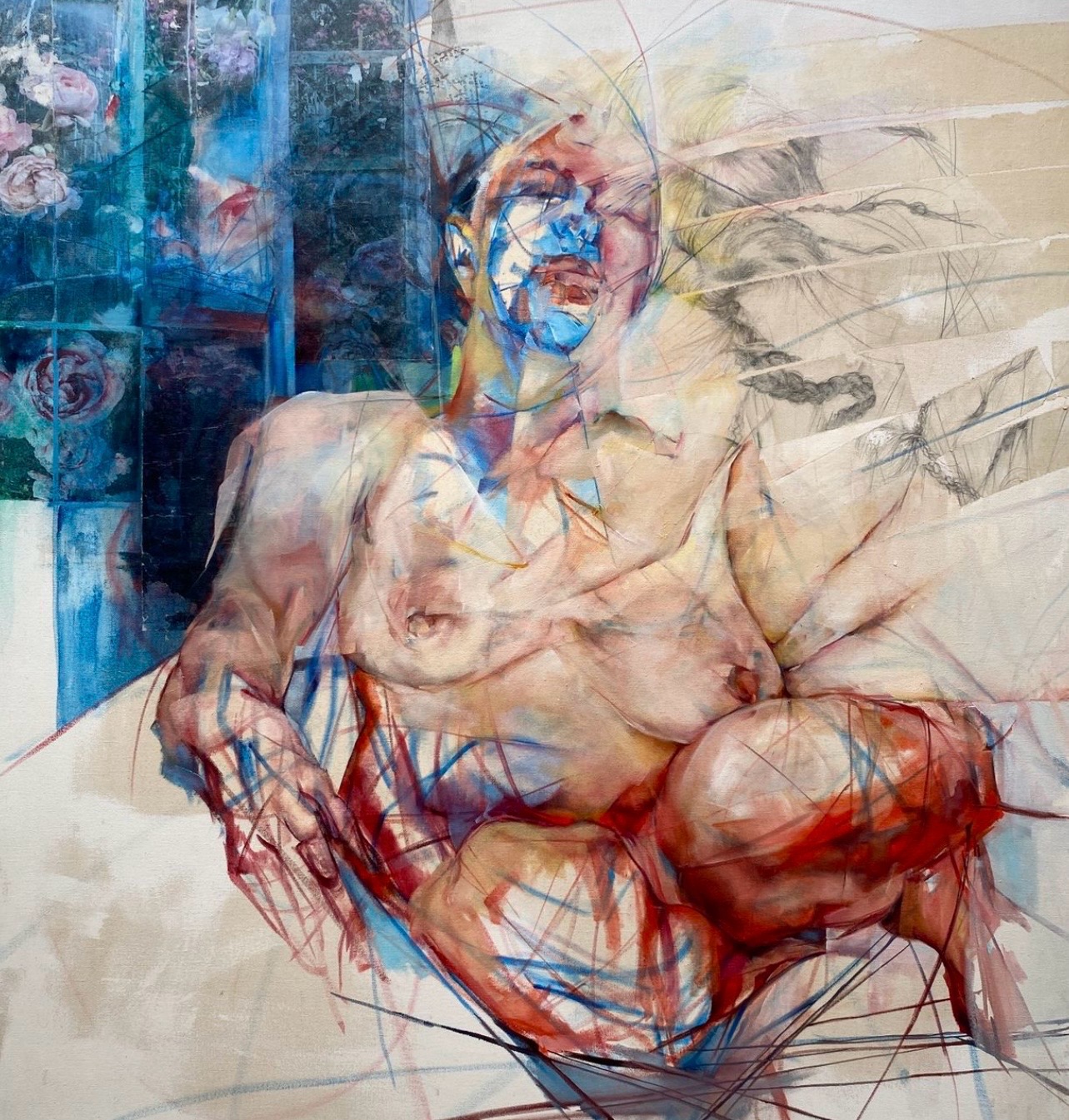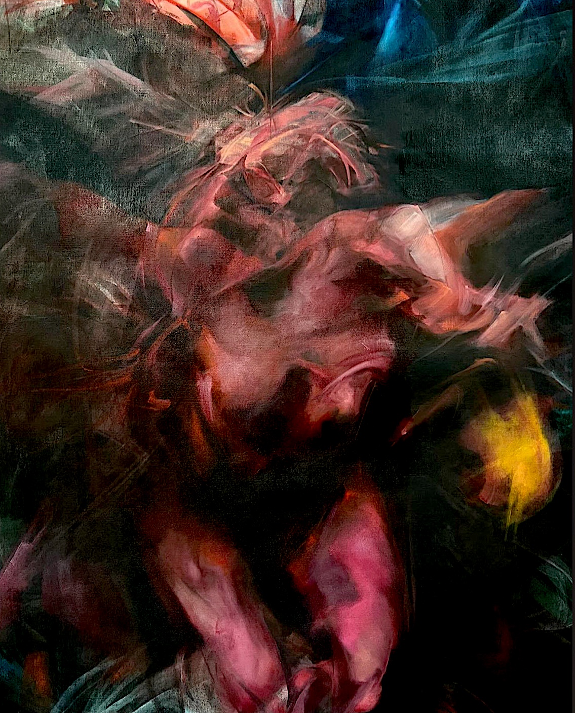 I am an abstract-figurative painter fascinated by the visceral palpability of being human. Evolutions of gestures, tones, impulses and sensations are worked into the raw side of the canvas, a metaphorical skin that absorbs the paint like how the body holds onto memories. Mapping out the miscellany of predicaments coexisting simultaneously, I am expressing what it feels like to be in this skin, in this moment, on this day.