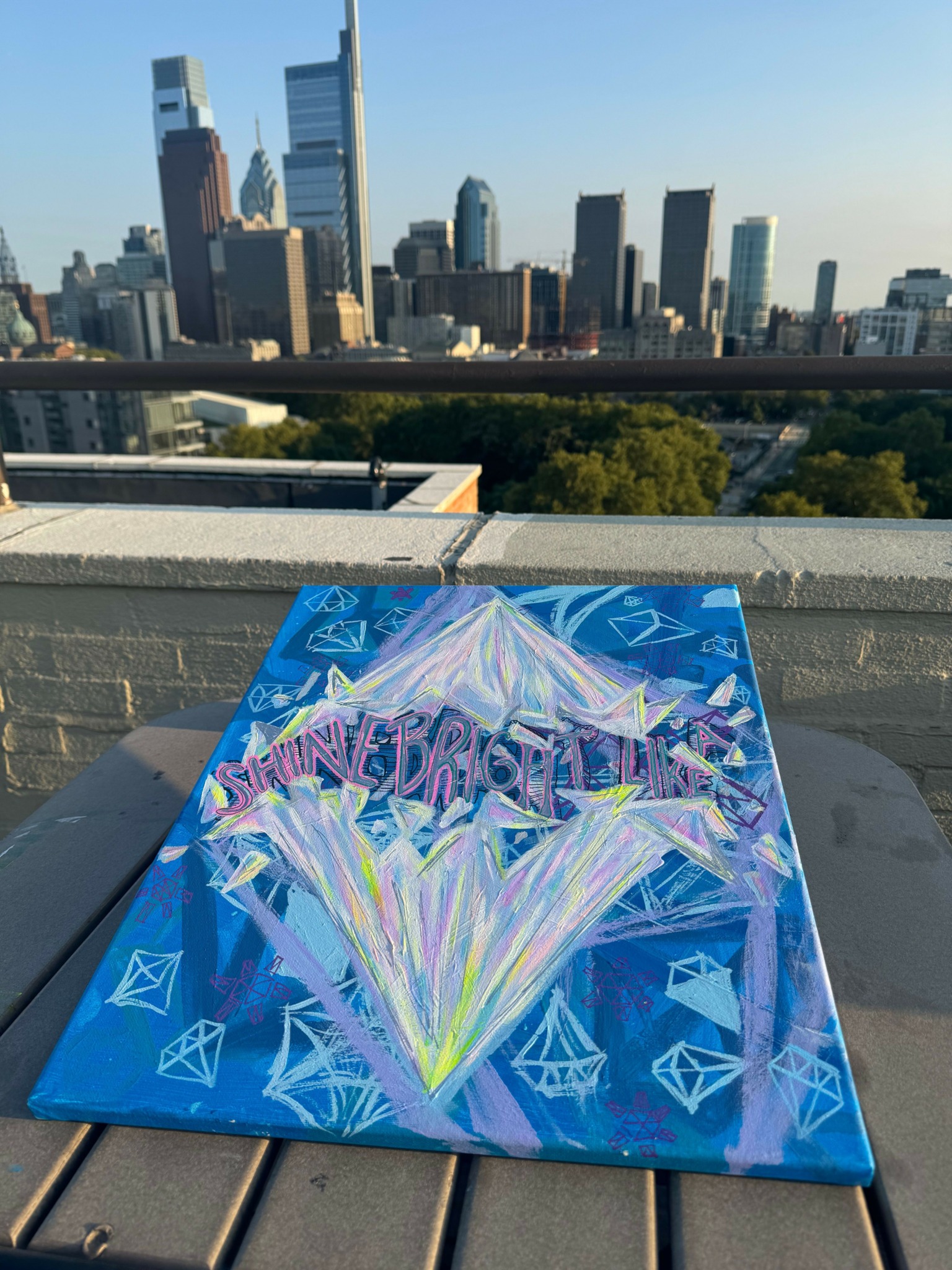 While I primarily work in acrylic on canvas, I love to explore new mediums and push my creative boundaries. I’ve painted a commissioned mural for a residence above Philadelphia’s Underground Arts theater, where I invited the clients to participate in the process, turning it into a collaborative experience. I’ve also painted custom DJ speakers, dabbled in digital art, and even worked on crafts. My approach is simple: if it can be painted, I’ll paint it.