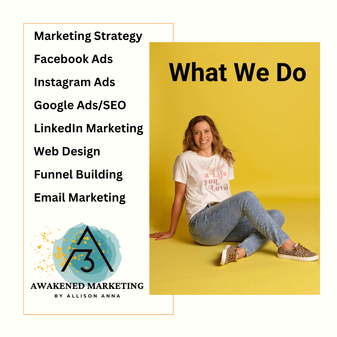 Awakened Marketing helps holistic and conscious businesses grow their revenues using strategies that are alignment with their values and purpose (no sleazy marketing tactics)! Who are holistic and conscious businesses? These businesses help people by selling holistic products or healing services. We offer Facebook ads, Google Ads, Google SEO, Web Development, Email Marketing, Copywriting, Branding, and more! We are known particularly for Facebook ads. I started this business by investing in a mentor who taught me all the best strategies for Facebook ads that work for any kind of business. What sets us apart is my burning desire to serve others and give value in a multitude of ways. This is the culture that I have built into this company. Many marketing agencies out there charge for every little thing. If it’s something we can do easily that doesn’t take much time, it’s on the house! If you are a previous client and you have questions or need direction, I am always here for free information – no gatekeeping around here. I am most proud that we don’t have a single client who has had a bad experience with us. If you or your business helps people live a happier, healthier, more awakened life, we want to help you grow your business!