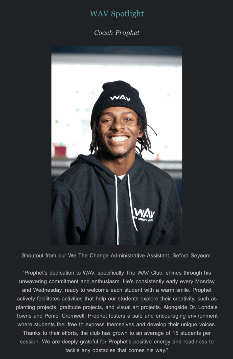Ebri Yahloe. She’s my sister , my motivator , my kick in the behind if you wanna call it that . From bathtubs to fast bucks we’ve been together through it all together . She has always pushed me to be the best that I can be and if someone doesn’t like that, she always lmk that she has my back no matter what . She put me on to the job that I have now , at a nonprofit organization called WE AMPLIFY VOICES , which serves underserved communities and neighborhood as a place to do art , escape the streets , Or just overall resources if need be , I lead a summer program for them and I coach little league football for the exact team I played for when I was younger. Read More>>