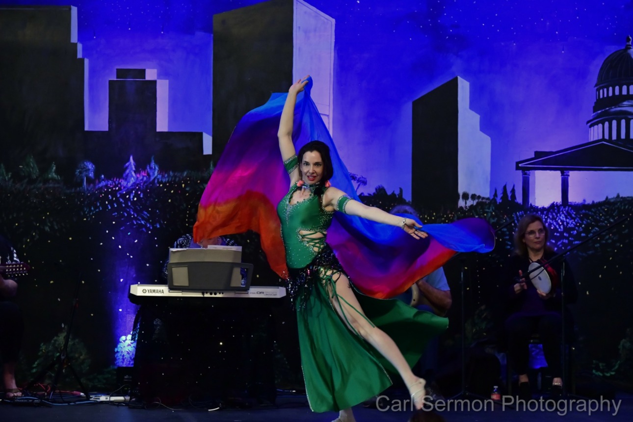 My training includes fusion improvisational vocabulary, Raqs Sharki, and datura style. My experience includes group and solo pieces. My main teacher now is Stefanya for Egyptian style technique and vocabulary. She focuses a lot on avoiding injury, inner thigh activation and internalized movements in the soaz, and continuously improving dance rather than focusing on conformity and perfection in the moment. Read more>>
