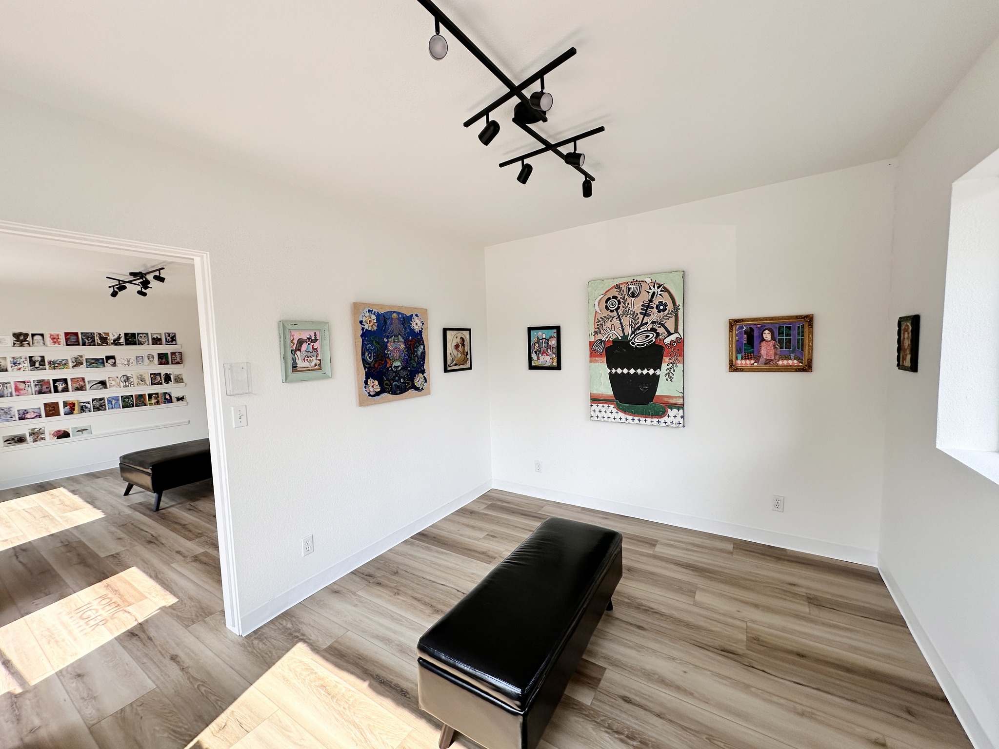 The Poetic Tiger Gallery provides a diverse array of exhibition experiences within a thoughtfully designed space. It includes a main exhibition room for monthly group shows, a dedicated solo exhibition room, the auxiliary room, and a captivating one one-of-a-kind miniature exhibition room. Additionally, the gallery includes an inventory room, along with the Tiny Art Gallery—a standalone, house-shaped structure that proudly participates in the Tiny Art Free Gallery movement.