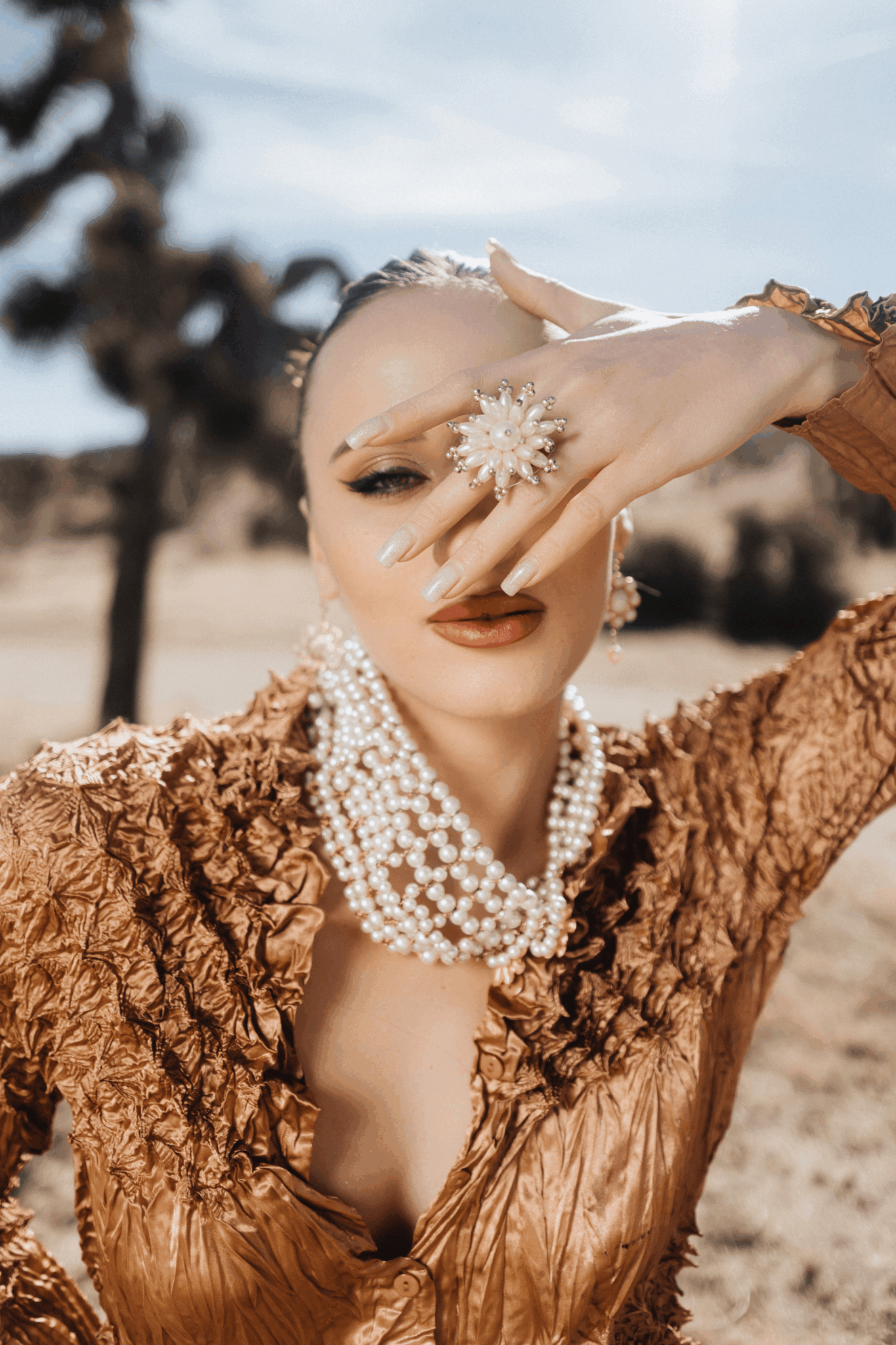 I love everything vintage and like to incorporate vintage jewelry and found pieces in my designs. I draw inspiration from unique and bold patterns and textures and colors in items that I thrift. I love deconstructing old items to create modern wearable art and love to see models wearing my pieces.