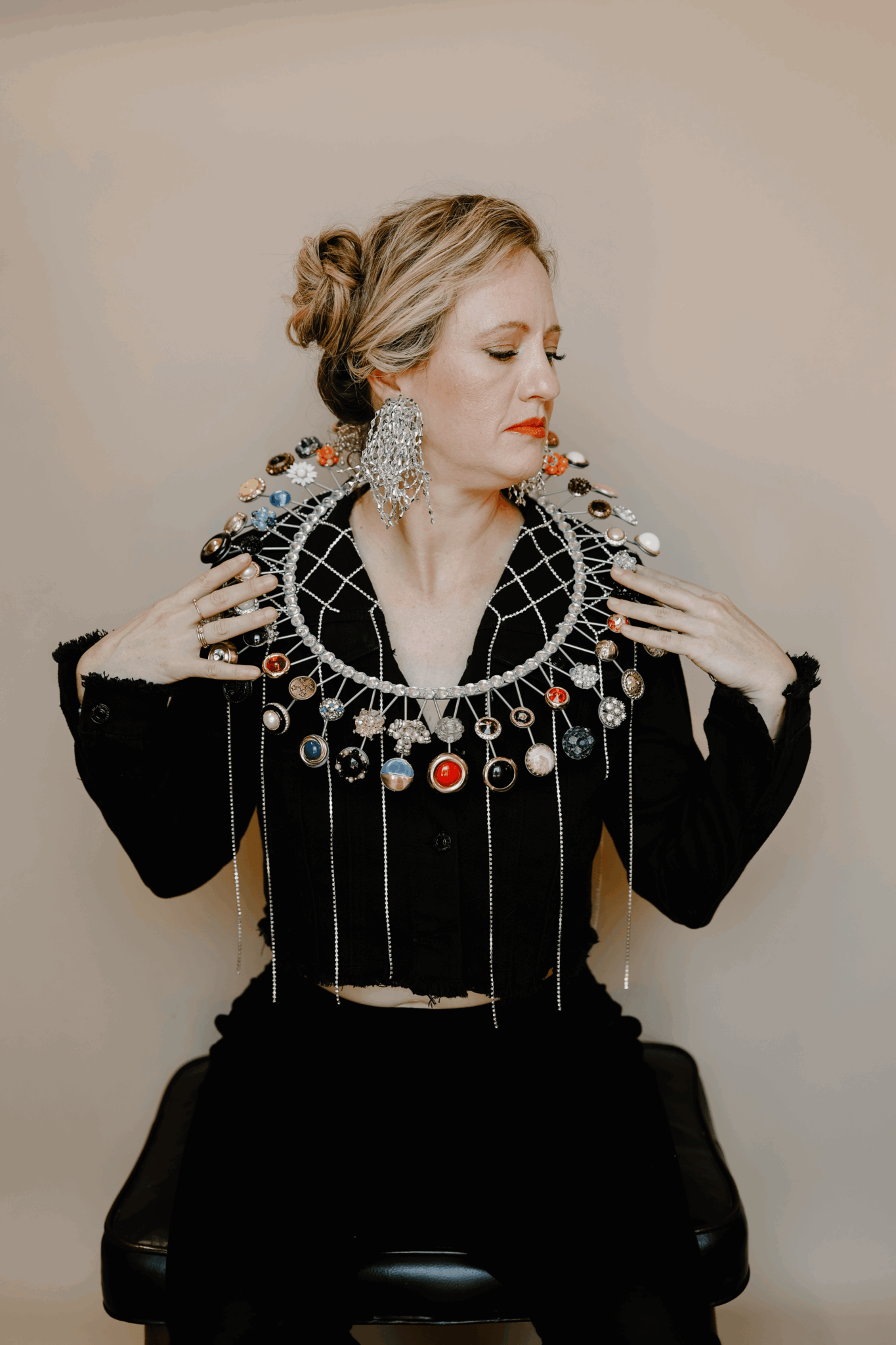 I work exclusively with vintage costume jewelry and have many different offerings. Firstly, I create one of a kind statement pieces (jewelry and wearable art) for fashion shows and custom events/clients. I also work with clients to redesign and repair their heirloom jewelry. For example, a client will bring in a necklace and I will turn it into a bracelet and earrings. The most popular repair is knotting and stringing pearls. I have worked with clients for special occasions and also have redesigned heirloom pieces for brides.