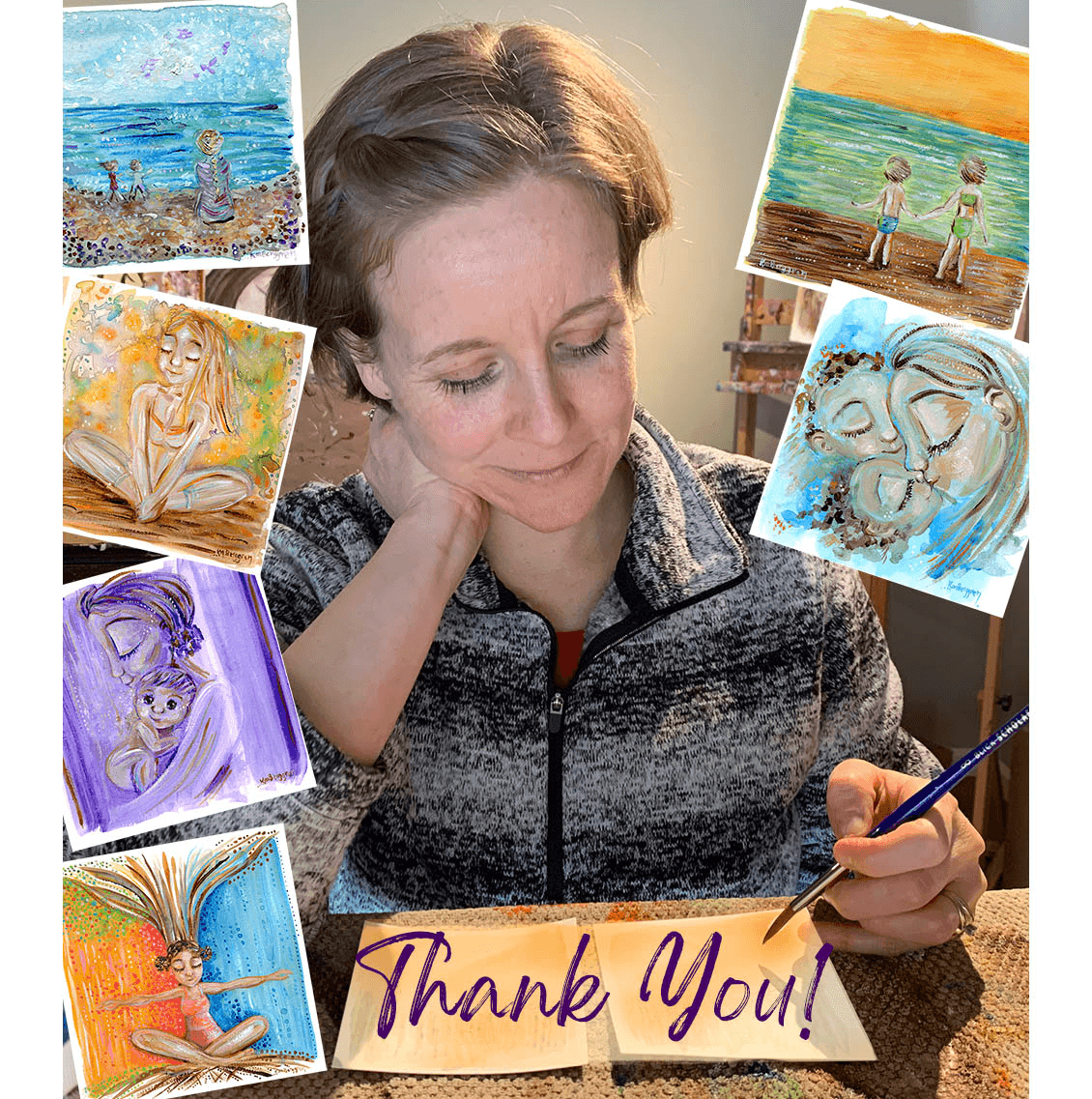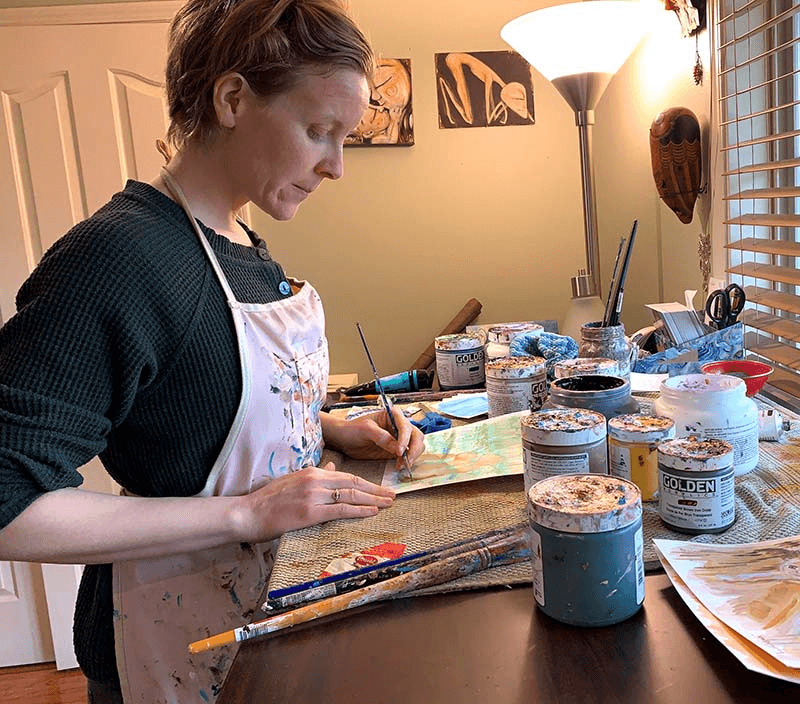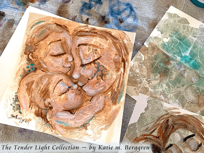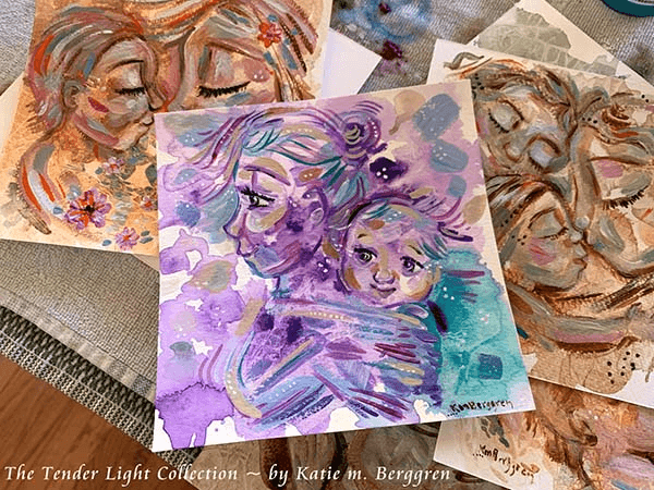My favorite to make isβ¦ motherhood! I love capturing skin to skin and the way bodies fold together. I love the way hair can flow and dance and interact. I love energy and movement and sparkle and glow. My favorite method to capture motherhood with is by putting acrylic paint on paper or canvas. Using brushes, or my fingers π