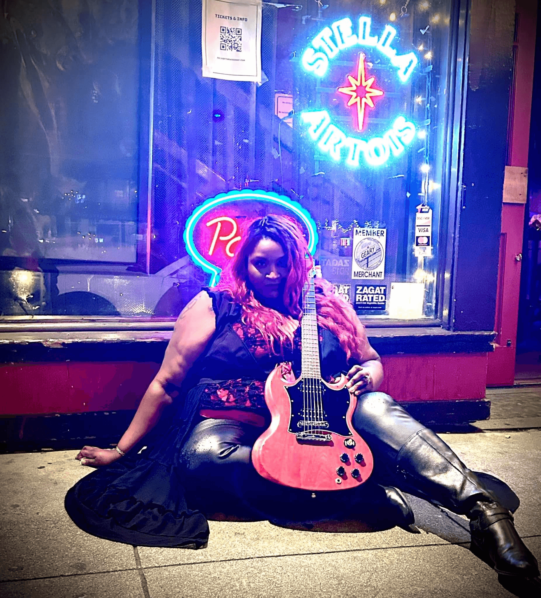 As a teen, I spent time at the iconic 924 Gilman, where I witnessed bands rise to fame and learned from the punk scene. After my accident, which left me unable to play the violin, I turned to the guitar, guided by the punks I admired. I also dabbled in the rave scene as an underground DJ for a few years, but the strong pull of the guitar kept calling me back. I channeled my depression, teenage angst, and childhood trauma into my music, and in 1996, I fell in love with rock ‘n’ roll—I found my true home. It wasn’t until later in my adult life that I discovered my grandfather had also been a rock ‘n’ roller, which felt like a full-circle moment.