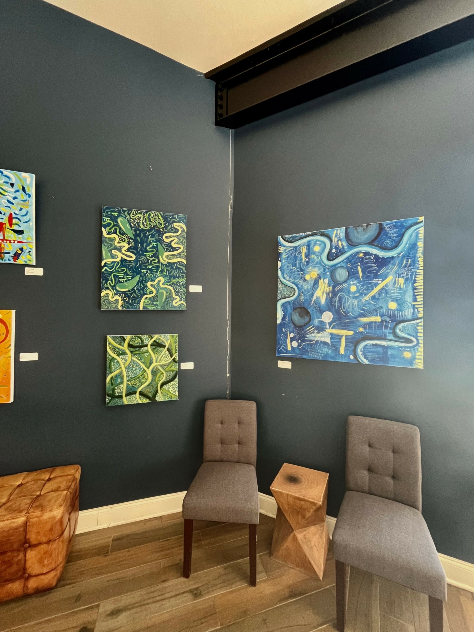 The most rewarding aspect of being an artist for me is having the opportunity to create art that resonates with others. As I grow my social media presence and share my art, not only do I find other artists on a similar journey, but I’m also able to make connections with people who may not be artists but appreciate art and enjoy my work from a perspective that I don’t have. I love being able to share my work and learn how others interpret it. Working in abstract form allows there to be a lot of interpretation with my work. While it is all based on music, if the music isn’t present while someone is observing the work, it can change how someone views the piece. Some people don’t understand my work, or they have questions, which is understandable and encouraging. The way I interpret a piece is not going to be the same as someone else’s, but when others share their interpretations and opinions, it allows me to have a new perspective. I thrive on feedback because it helps me to be able to create work that resonates with a larger audience.