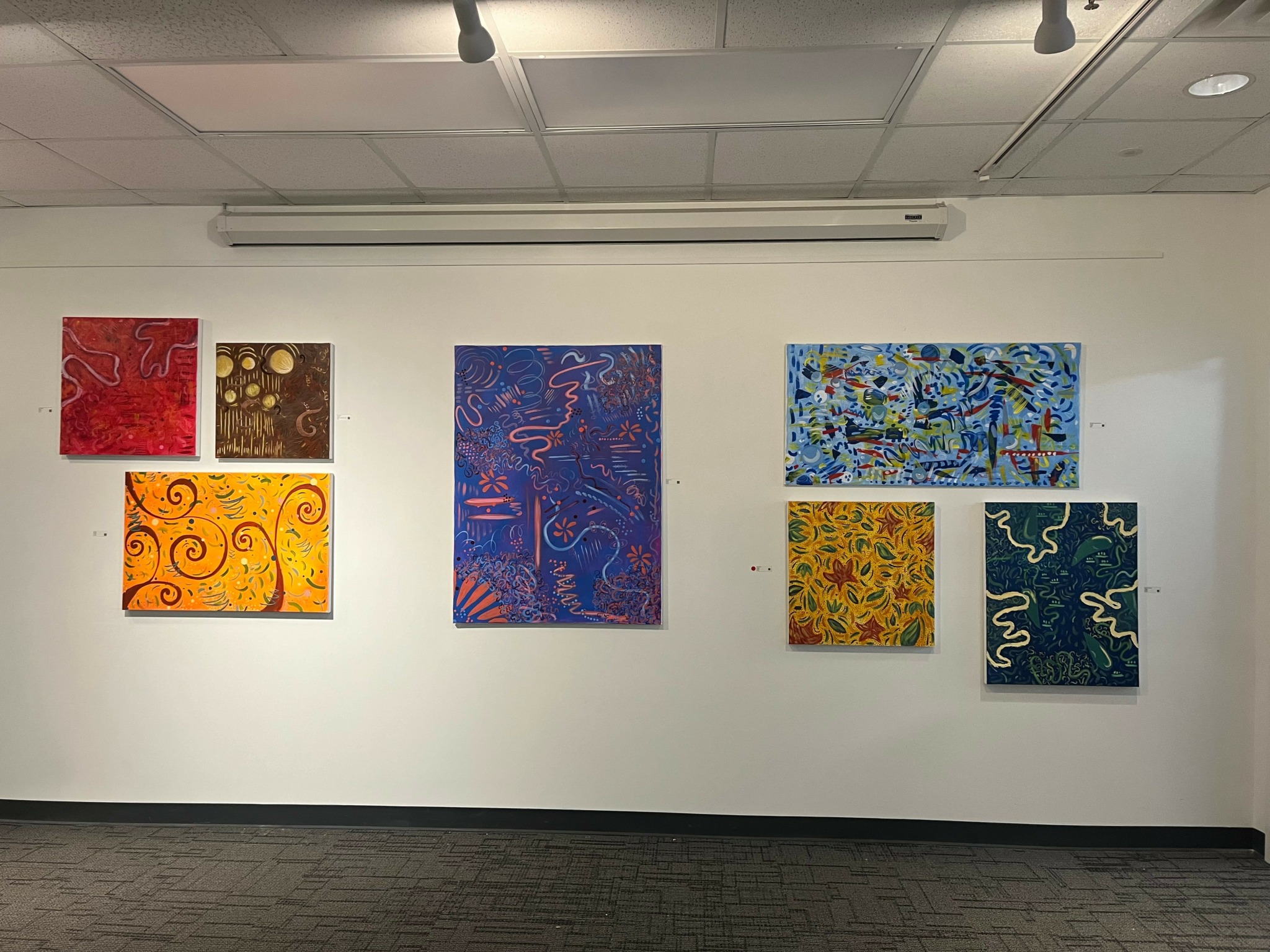 My art is primarily focused on my synesthetic experience with music. What started as my senior thesis for college has continued to grow into an ongoing body of work. For those unfamiliar with synesthesia, it is the psychological phenomenon where one experiences a cross in senses. I experience a cross in sight and sound, which allows me to visualize music and then paint my visual experience. The work I create is primarily non-objective and emphasizes color, shape, and movement to convey the music it represents.