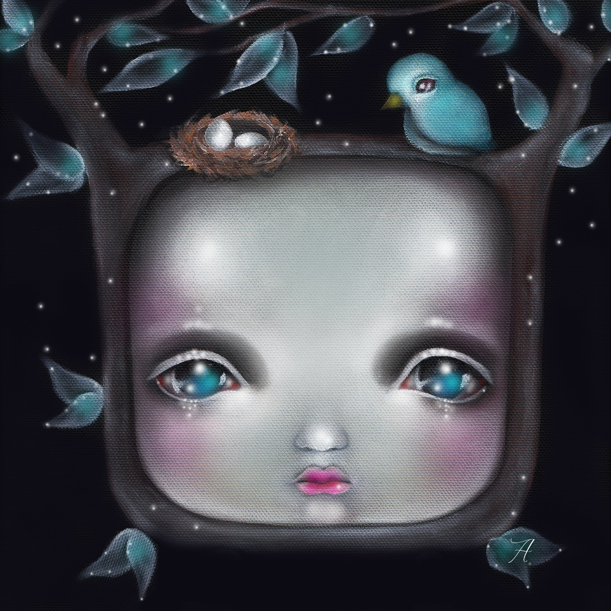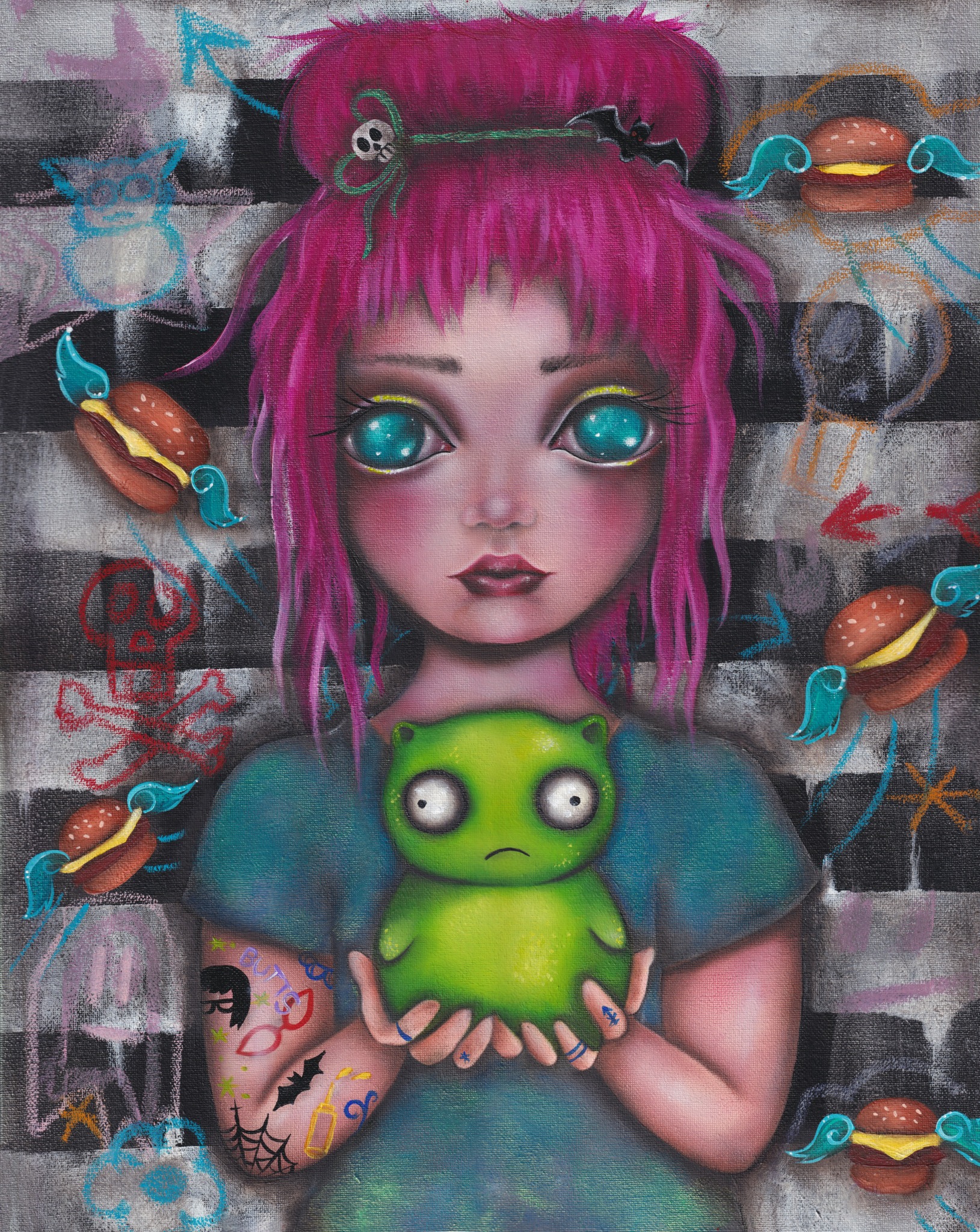 I create instinctively. Art is how I process the world, my emotions, and my dreams. Every piece is a reflection of my inner self it’s deeply personal, not just decorative. I blend Pop Surrealism with storytelling to create pieces that feel dreamlike yet emotionally real. A Whimsical Innocence paired effortlessly with Creepy Delusion