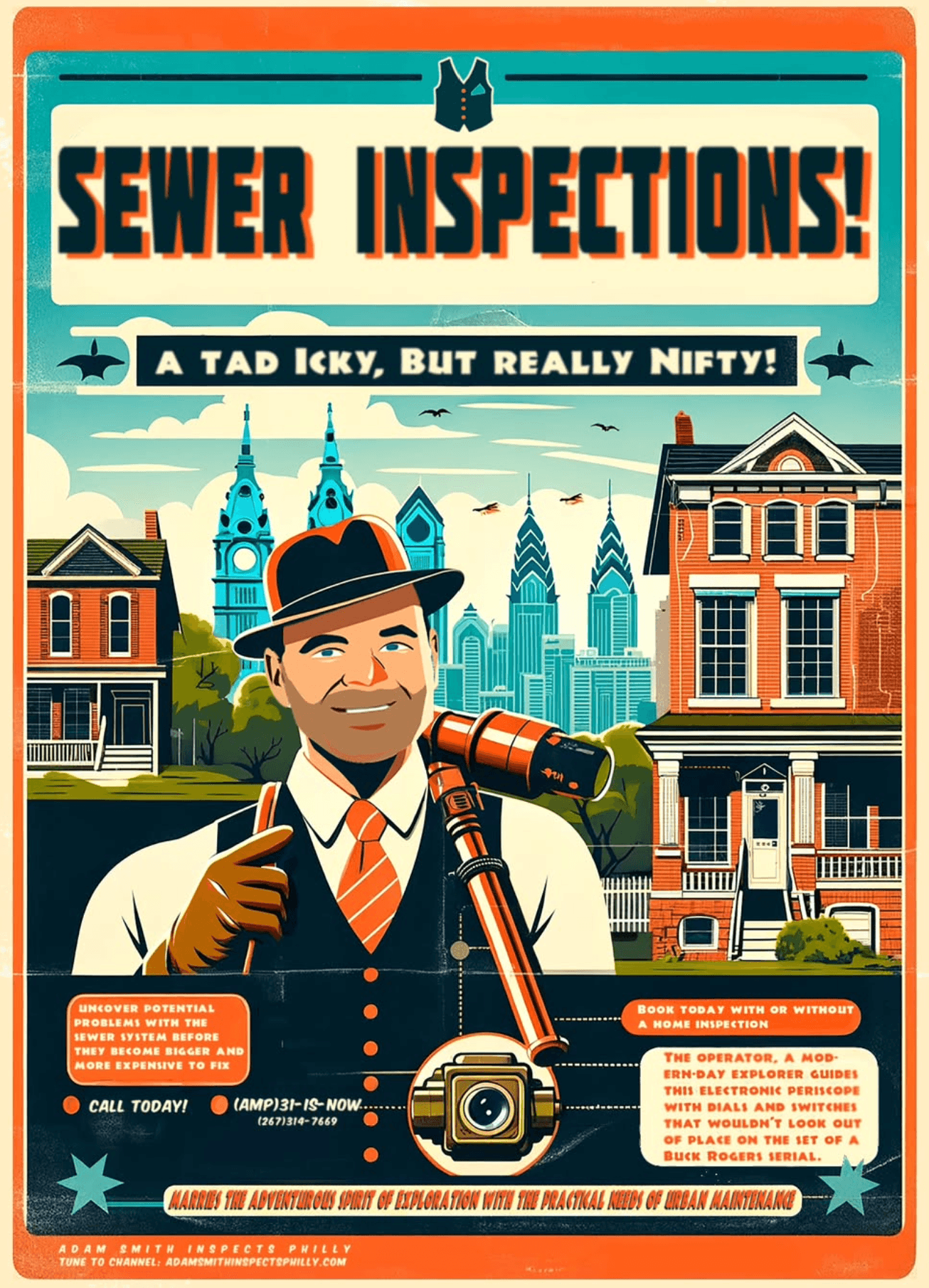 So I started investigating the different aspects of the business that I would need to set up and interviewing other inspector friends who had also gone solo. I found an accountant, got the insurance I needed, and met my incredible office manager Sharon. I also invested in the branding and marketing for the company so that the images match the quality of service I provide, with a touch of whimsy to match my personality. I decked out my new work van with decals that say “Adam Smith Inspects Philly” in huge letters on the side, which is very recognizable–my daughter calls it the “Dada Van”.
