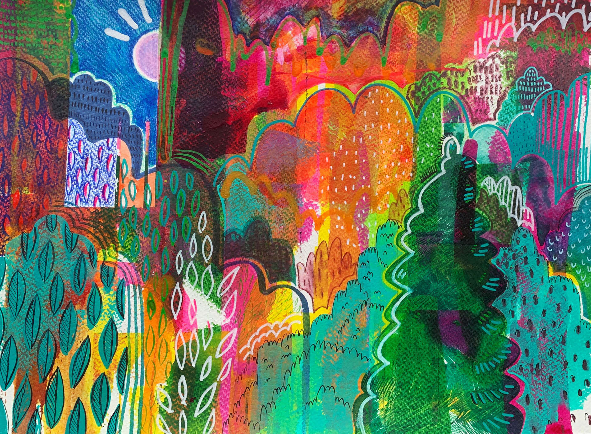 I am an interdisciplinary artist, illustrator, educator, and advocate from Texas, living in Washington, DC. My work is illustrative and made with mixed media on wood panel or paper, digital illustrations, and ceramics. I work with mixed media and printmaking techniques to create layered works. I am influenced by graphic design, street art, travel, topography, and vintage children’s books—telling stories about anxiety, memory, identity, time, and escapism and how they can affect perception or experiences. The core of my practice is human emotion and our internal and external reactions to it. I am most excited about my current project: Memory Portrait. With It is a community-sourced portrait project. Participants are encouraged to submit images of loved ones or candid moments and a story to pair with their photo. Instagram: Instagram.com/addiethenomad. After a participant submits a submission, I may choose to create an artwork in response to the submission that will be exhibited with a written or recorded interview about the memory. It is an opportunity to turn my platform outward to the community. I have sent QR codes to international friends to put up in their cities for global submission.