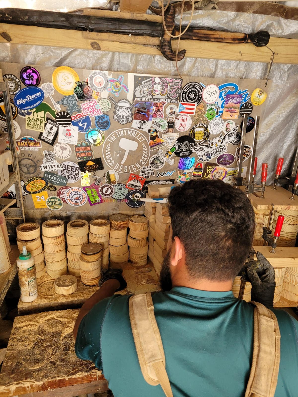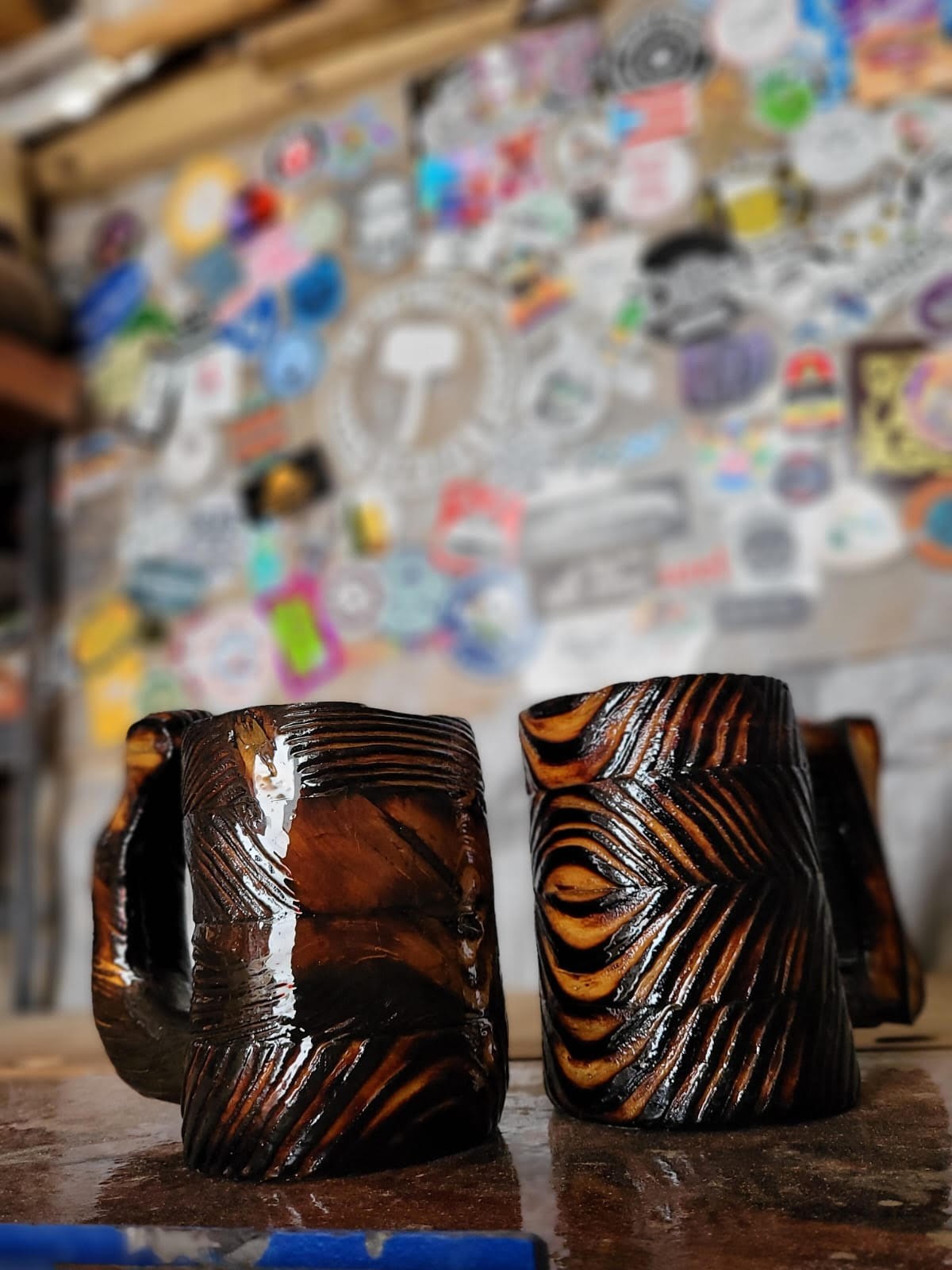 We first started during our engagement year. Adrian made gifts for his groomsmen, the first five mugs. After so many people raved about them we knew we had to start the Tiny Mallet. Which got it’s name from a not so tiny mallet Adrian had made to work on yet another wood project.