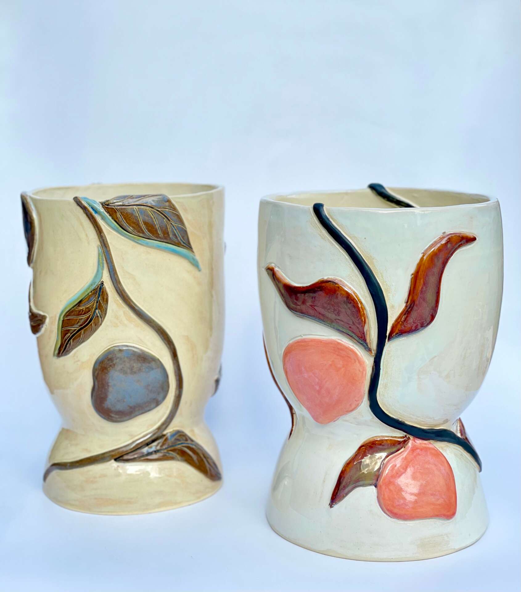 The functional and non-functional ceramic vessels I create are made to connect with the soul. This is done through the tactile touch sense or contact with the beauty of sculptured relief of the human form, texture, design, and color. Some pieces are wheel thrown and others are made by coil building and slab construction. I’ve found myself going back to the basics of what I learned in my first ceramics class at age 15. Hand-building forces me to slow down and plan my next move with the clay.
