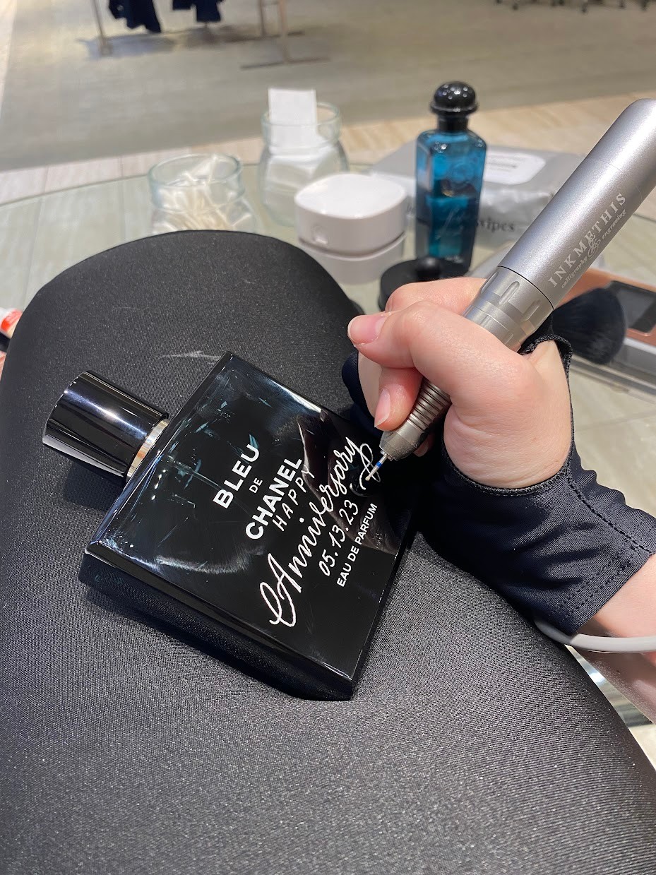 I serve local brands heavily through brand activation events, providing on-site live calligraphy and engraving services to provide a unique and memorable experience for customers. This has been in the form of engraved perfume bottes at Neiman Marcus, hand lettered boxes and cards at Tiffany’s, and custom house portrait commissions for local real estate agents in the Chicago area.