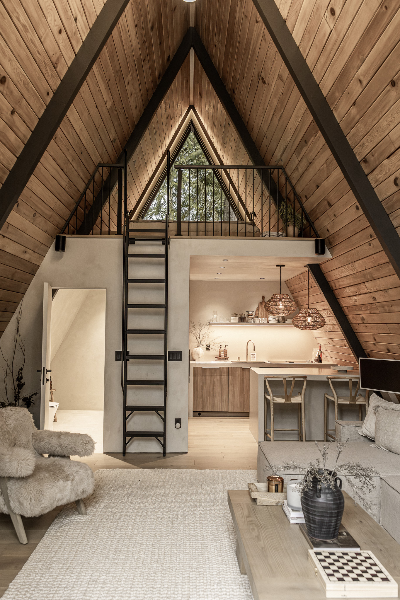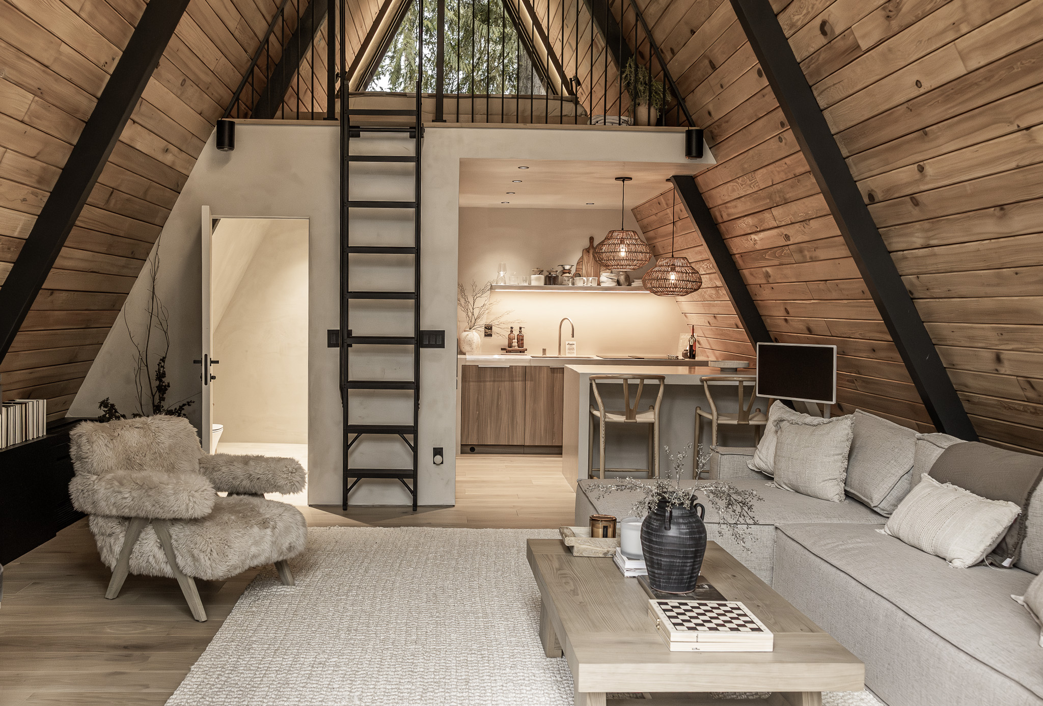 When we decided to purchase our A-frame cabin in Washington and rent it out, we felt something was missing from many rentals in the area. While there are plenty of beautiful cabins with stunning views, we chose to go against the grain—and the advice of many—to treat our property as more than just an investment. We wanted to pour our hearts into it, prioritizing the details over cutting corners to make the numbers work. We invested in floor-to-ceiling glass, high-end furniture, premium finishes, and top-tier lighting, aiming to create a luxury experience that felt like a personal resort, not a typical rental.