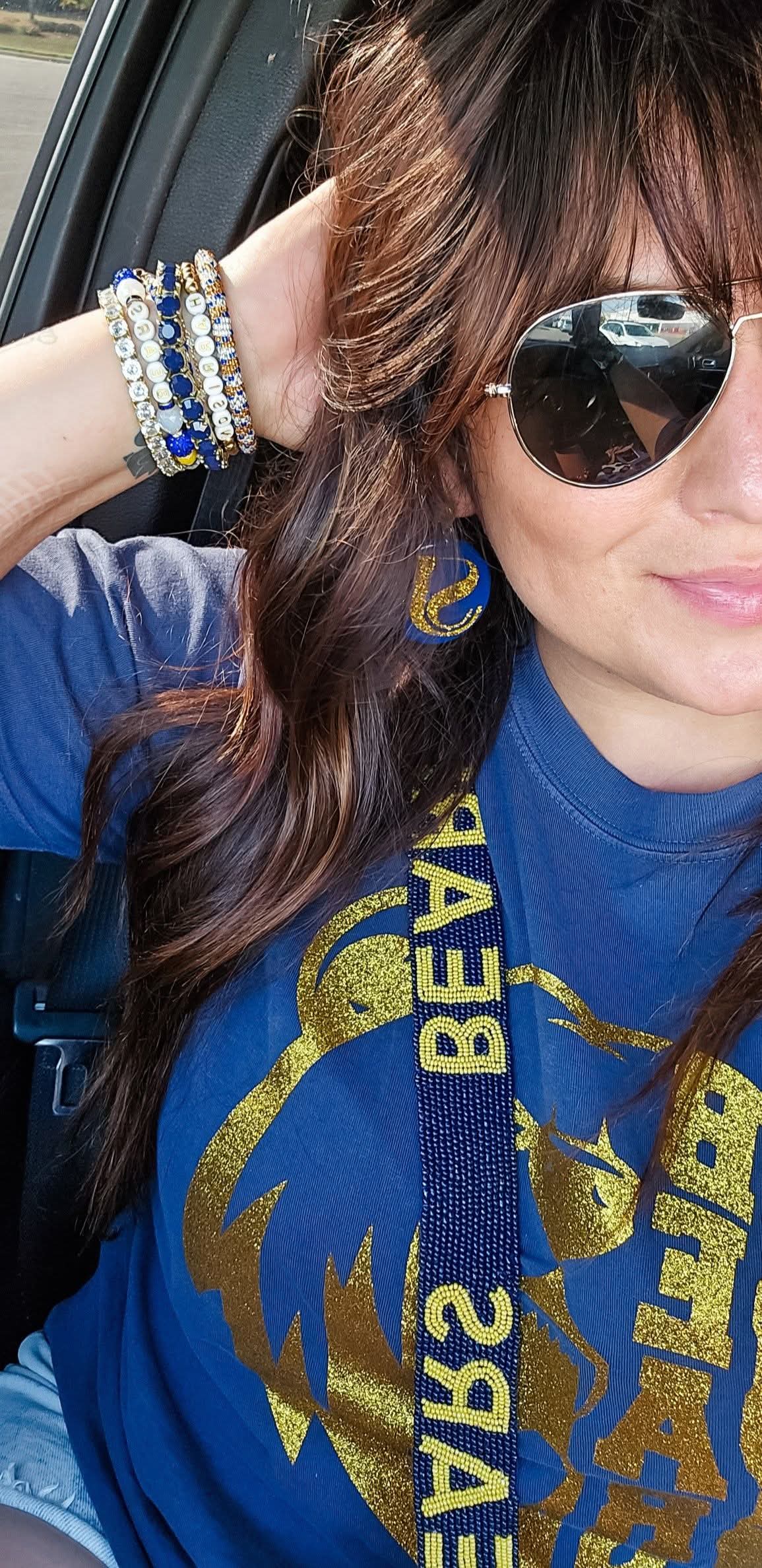 But only a few days later, Catie Brown-Busch reached out and asked if I’d like to list some bracelets on their Bears Rocket Football website as a fundraiser. I nervously said yes, created a Facebook page to establish myself, and just like that, Alena Dunn Designs was born in August 2023.