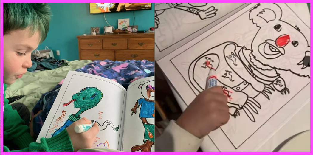 The “100 Pajamas Coloring Book” characters were created for children in our family and extended/created families to color during Covid lockdown in 2020. These illustrations are full of joy. The characters are unique, drawn perfectly imperfect, and are a collaborative manifestation of finding fun in times of turmoil. Our nephew was very late to coloring within the lines. His sisters were both perfect colorers. He didn’t like to color, because he was unable to stay within the lines. Wow, he was amazed when we showed him our first character that broke the border line, that refused to stay within the lines. He really began coloring with our illustrations! It was great, goosebumps great. With our new book, “100 MORE Pajamas Coloring Book,” we’ve gone even further with that concept. The penguin wears pinstripe pajamas, but one arm of the penguin also got accidentally pinstriped. We loved the penguin’s expression so much that we decided to run with it, striped arm and all. Another character, the warthog, has a blackened tooth. We tried three versions of this character and each time, we kept coming back to the first one, because the expression is so dear. Who cares that the warthog has a blackened tooth? That happens to teeth sometimes. We are a unique coloring book because there is no coloring book like ours. There are no characters like ours. One of the things that we love most is seeing how you make our characters yours! So, send us your colored pages, tell us your ideas. Maybe, your idea will be featured in our next series edition of 100 Pajamas.
