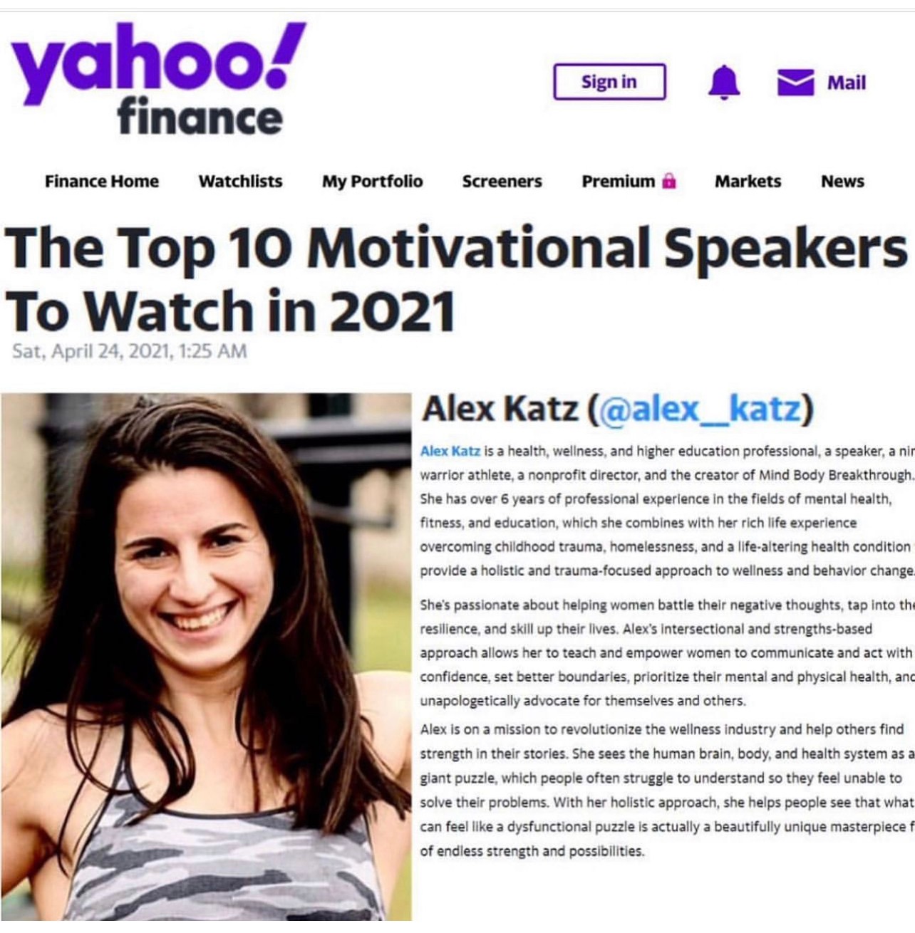 Starting my business was one of the best decisions I have ever made. As a coach, I provide holistic health, life, strength and behavior change coaching to folks all over the world, helping them develop a better relationship with food, themselves, and their bodies. As a speaker, I have spoken at some incredible events and was even featured as a Top Motivational Speaker to Watch in 2021 by Yahoo! Finance. I love using my professional experience to change people’s lives, and my story to help others find strength in theirs. In addition to my business, I also founded two nonprofits, and have been the Volunteer Director of a third for a few years. I absolutely love the work that I do and how I’ve been able to help so many people!