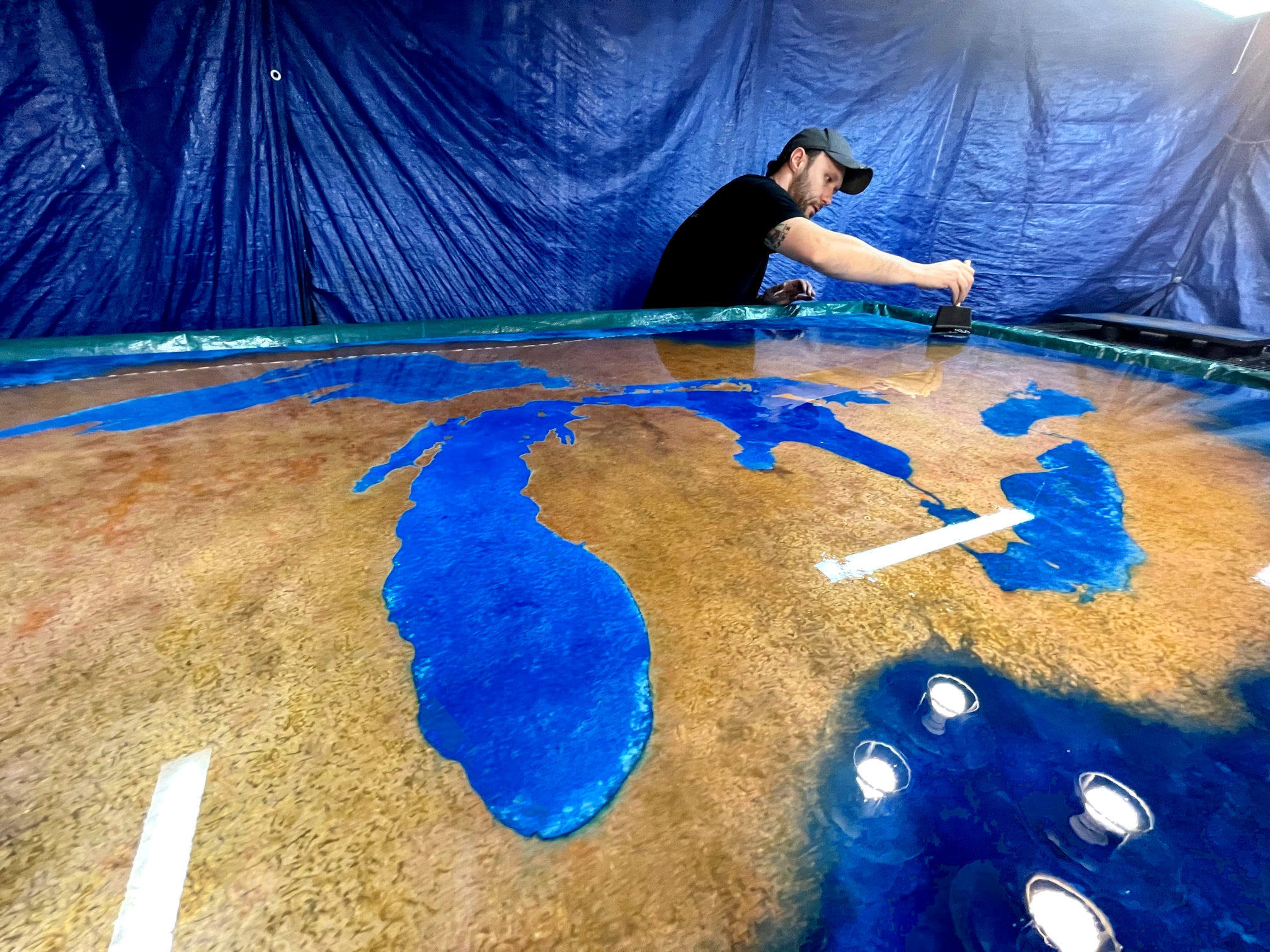 We constructed a copper and stone bar in our log home’s basement in 2016. We wanted to hang an appropriate piece of art behind it and I thought a silhouette of the Great Lakes using the leftover copper would be perfect. Not wanting to reinvent the wheel, we searched but were unable to find any find any tutorials on the internet, or any evidence that a company or an individual who had ever done anything like it. So we invented our own process. After almost a month of failed attempts, we finally came up with something that we were happy with and posted it on Facebook so our friends and family that were following our bar construction could see our unique creation. Within a day or two, we received over 50 orders for similar pieces. Within 6 months, we were so overwhelmed with orders that my wife Becky and I needed to decide if we wanted to continue with our established careers or become full time artists. We decided to jump in with both feet and within a year, we were wholesaling our art to over 40 shops and throughout the state along with our online retail outlet. Other than our children, Alex, Peter and Annie, we don’t hire any additional help so as to keep our 42 step, 10 day process a secret.