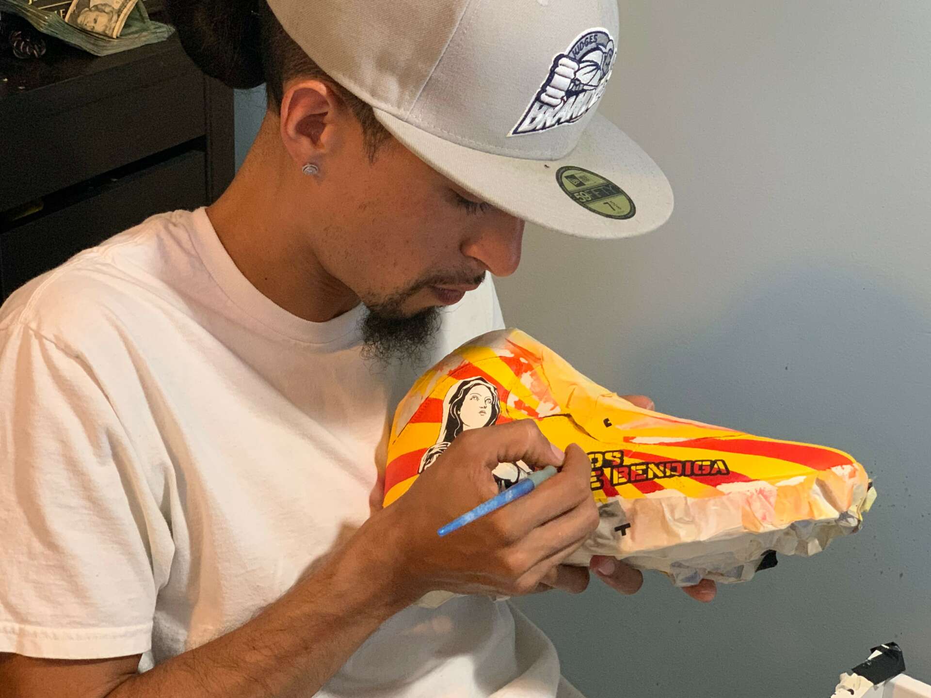 During the pandemic in 2020 we were all working from home. Needing something to spark our imaginations of a better day. As I sat staring at my all white Jordans, I thought to myself, what changes could be made? I wanted something simple since this was my first time painting shoes. The shoe changed from white to purple and lime green. I posted my pictures and told my friends and family about my ideas. Then my family members wanted shoes and they showed it off to their friends and coworkers and so on. The customers I work with take pride in the work we do together when they step out in their custom kicks, post pictures and share with their loved ones who designed their shoes, Yo Soy Custom.