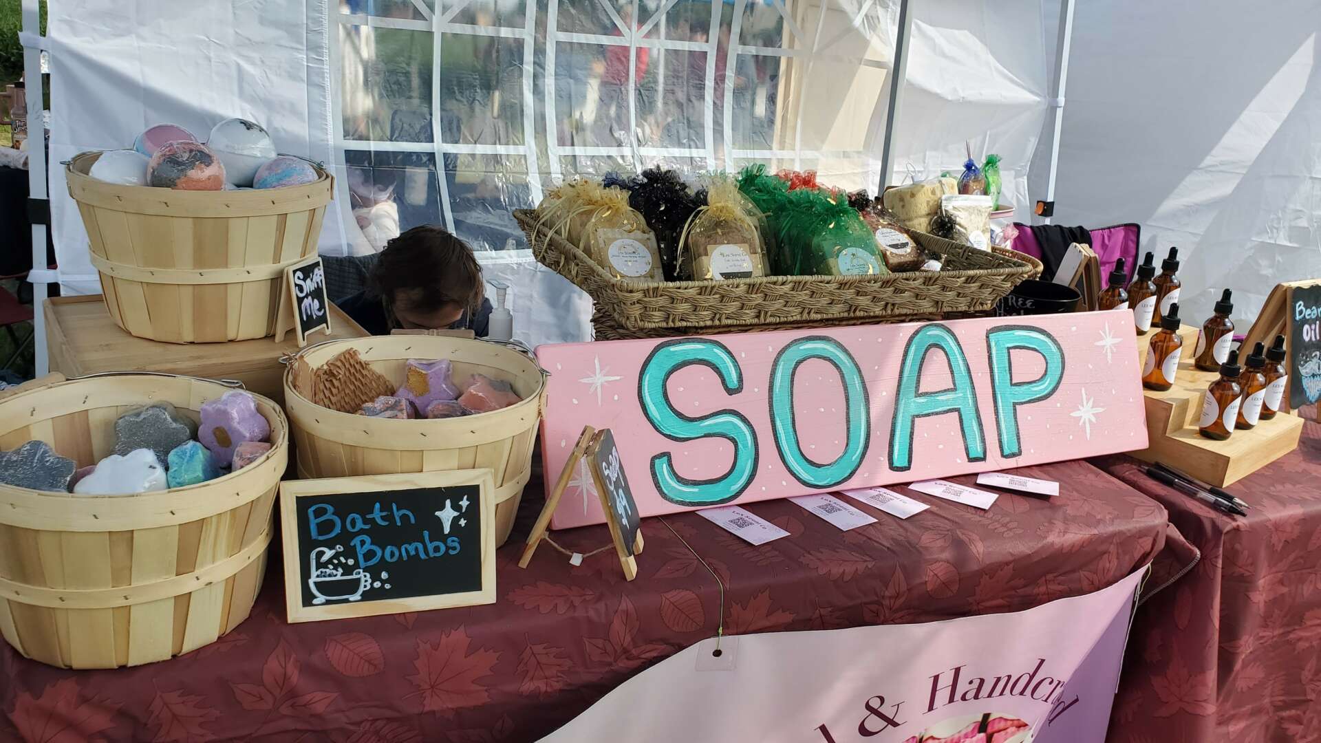 If someone comes to an event I’m attending, I believe what catches their eye first is my one-of-a-kind soap designs. Soap making is an artistic outlet for me, and my soaps display that. Each month this year I have taken my soaps to the next level, in design and quality. It’s taken me some time to find my style and voice in my brand, changing a lot as this year has gone on. This process took a while to work up to, it’s nerve wracking to commit to rebranding your business, it takes some effort and money. I think where I am at now, is the closest I’ve felt to my brand representing me and what I believe in; interesting scents, reducing plastic use, community focused, and playful designs.