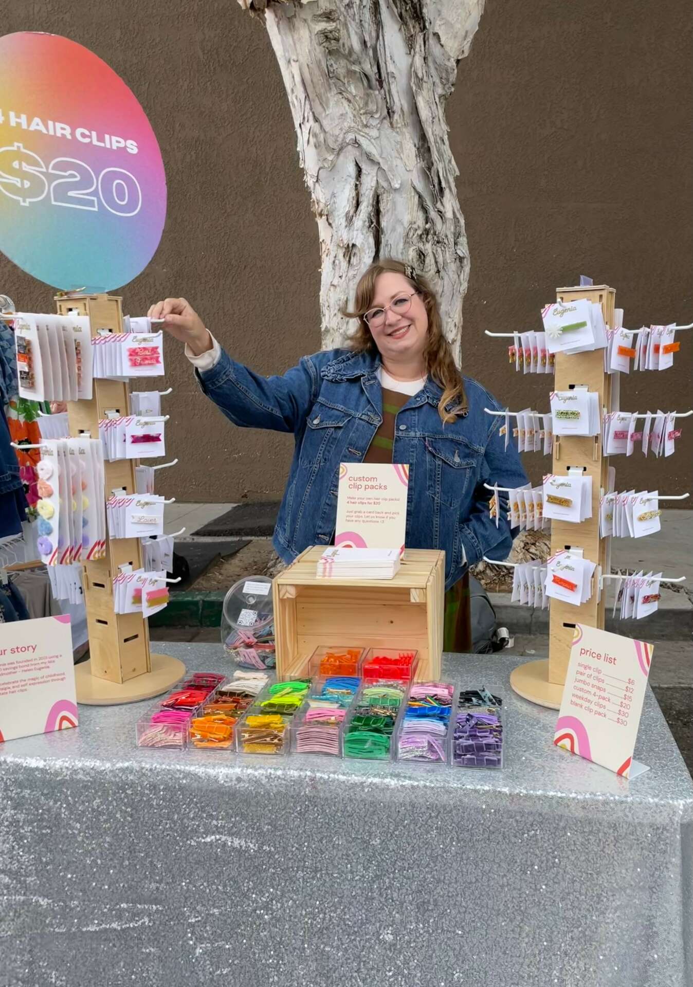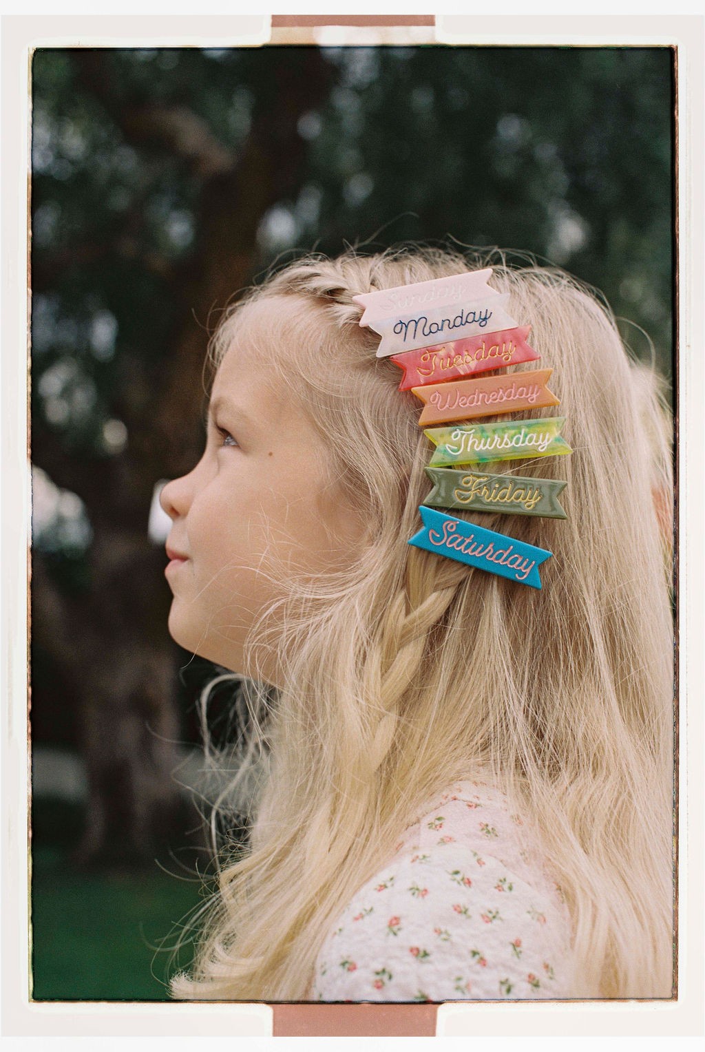 I had an idea to start a children’s brand in 2021, and using a $200 savings bond from my late grandma (Helen Eugenia), I did just that. Kind of. We started out on Etsy making sensory play kits for kids. I’ve always loved kids apparel and accessories. Like, I still buy accessories meant for kids cause duh, they’re more fun. So from there I decided to make some hair clips that I would put in my daughter’s hair, but that I would also wear. I started with Peanut, Nugget, Tater Tot, Half Pint, and Pee Wee. For the shape, I wanted something unique that also felt a little vintage, and after poring over photos of vintage hair accessories and sketching a bunch of designs inspired by pennants and ribbons, I landed on our custom shape. I love vintage-inspired design, self-expression, and hair accessories, and to be able to work in a Venn-diagram of the three is just awesome.
