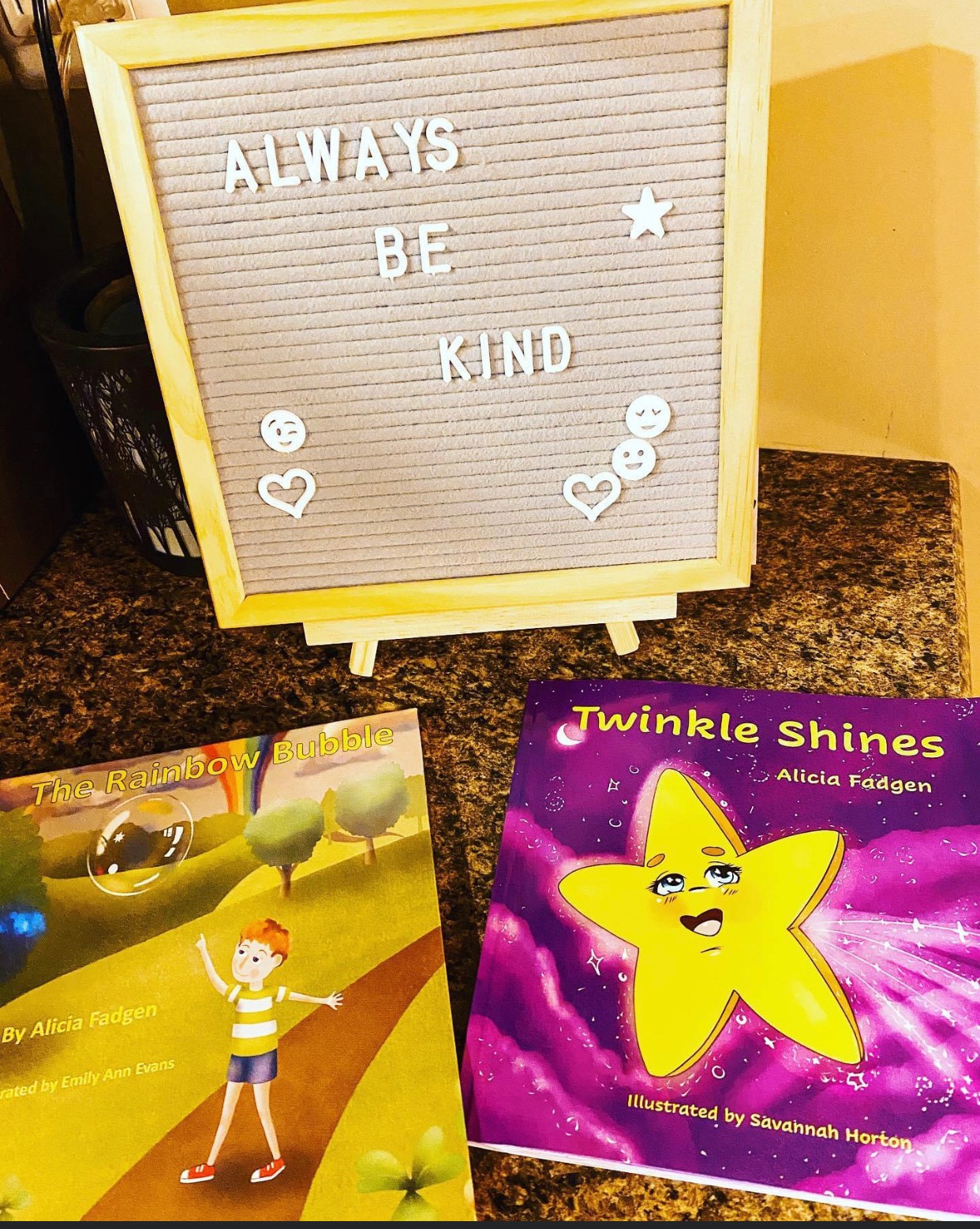Hello everyone! My name is Alicia Fadgen and I am a children’s book author. My love for writing started at a young age. I won awards all the way back in elementary school for my writing. Although I loved to write, I never imagined it becoming a career. That all changed when I had my 3 children. One night, I forgot to grab a book off the shelf for bedtime. I asked my kids if they minded me making up a story. They quickly agreed as they told me to make it about a rainbow and a bubble. I giggled and told a story called The Rainbow Bubble. This story ended up becoming my first ever picture book to be published. They helped inspire the story and my son’s name is the main character. After writing this story, I couldn’t stop there. I wrote and wrote and wrote. My children helped with naming the characters of my next book, Twinkle Shines. I also had a book published that I wrote for my middle child. She was struggling with her clumsiness, so this story was to help her embrace her flaws and treat others with kindness. I fell so in love with writing that I extended the length of one of my stories and it became my first ever chapter book. This middle grade book is called Sky Of Bliss and will be releasing in October 2022. My main purpose is to spread love and kindness through my children stories. I feel so passionate about children reading and learning and I am so excited to be able to be a part of that and bring joy to their hearts.
