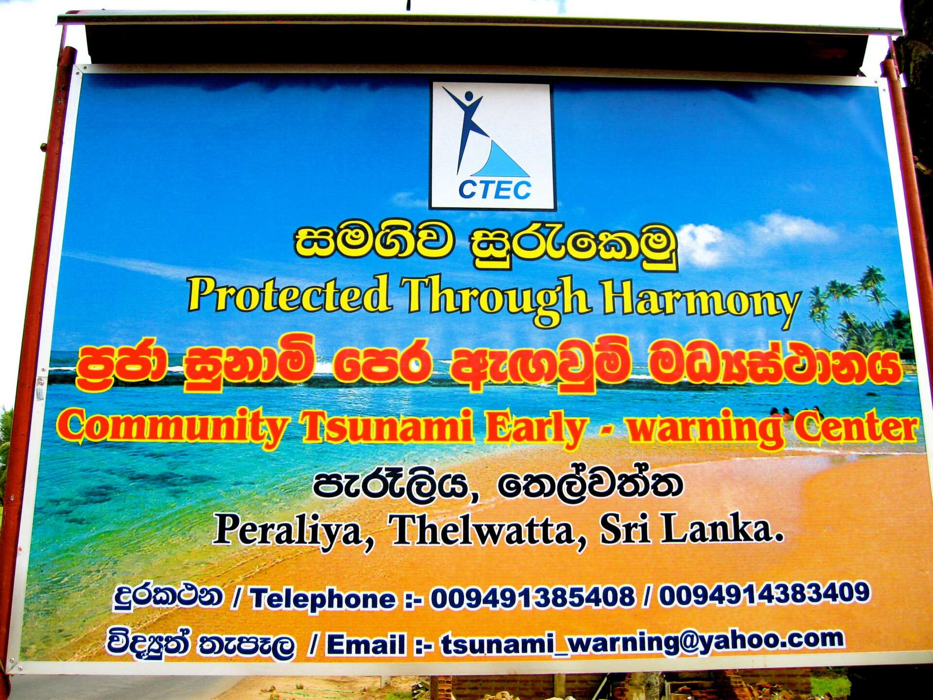 CTEC gives the local Sri Lankan people piece of mind when false tsunamis and disasters are disseminated and our children’s learning museum has daily visits from SrI-Lankan schools to learn about preparedness in disasters.