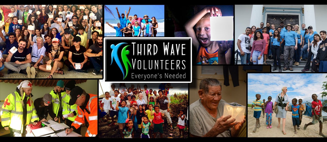 We are called Third Wave Volunteers, and we are first responders, medical and non-medical volunteers who go to help after natural and man-made disasters around the world. We do search and rescue, health-checks and give out solar lights, aid, water filtration, wifi, hugs, and love amongst many things, and set up resilient hubs to help communities get back on their feet.