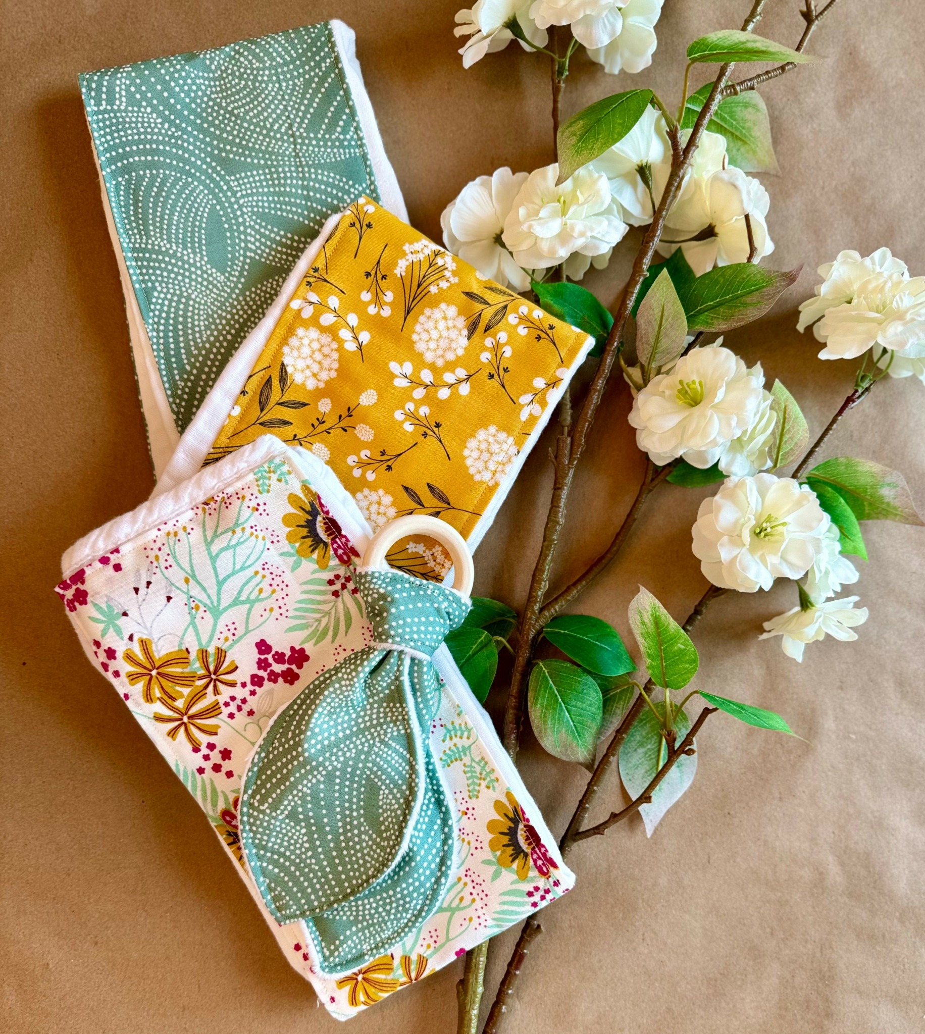I could shop all day every day for fabric. I love roaming the aisles and carefully examining bolt by bolt to see what’s new, what would go with something I already have, what unexpected print would be a fun fit for a baby gift. When I say I could shop every day for fabric, I really could!! What I especially love is a custom themed order. When a customer reaches out and shares a baby shower theme, a picture of the nursery décor, an expectant mom’s favorite animal or color, or, best of all, one of dad’s favorite pastimes or sports and then they trust me to run with it, it is truly an honor and a challenge I will humbly accept every time. I love finding just the right fabric within those requests and tying in coordinating prints and patterns for a truly personalized collection of baby gifts. Not only do I love the hunt for the perfect print, I love providing a gift that my customer is proud to give. I want my customers to know that I will deliver a high-quality baby gift that demonstrates their love for this growing family.