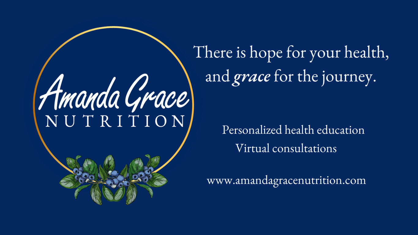 At Amanda Grace Nutrition, I provide education and support to help you learn these tools. I offer remote virtual consultation by video call, so you can join me from the comfort of your home or office – anywhere in the USA. And we can meet regularly for long-term support, working through challenges and making progress at the pace that works best for you.