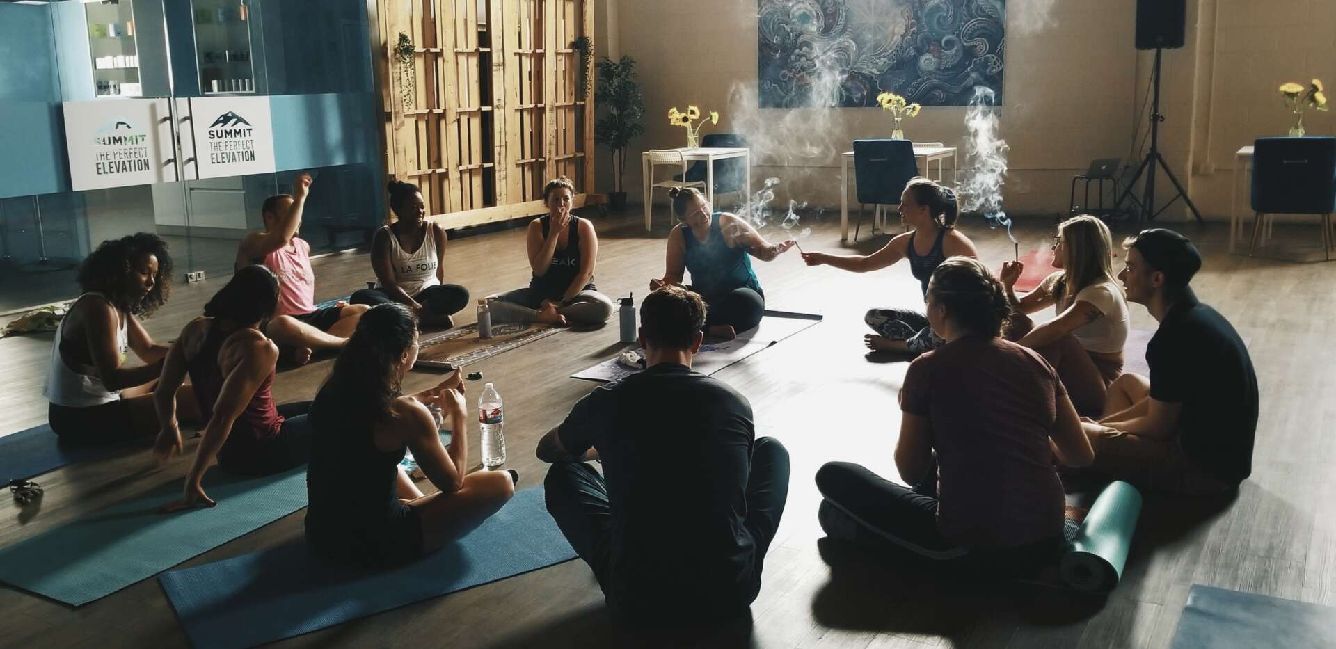 Yoga studios can be stuffy and feel unapproachable for newcomers. Especially when you roll in with glossy eyes and smelling skunky. So creating a yoga space for stoners was a no-brainer, and the magic happens pretty organically.