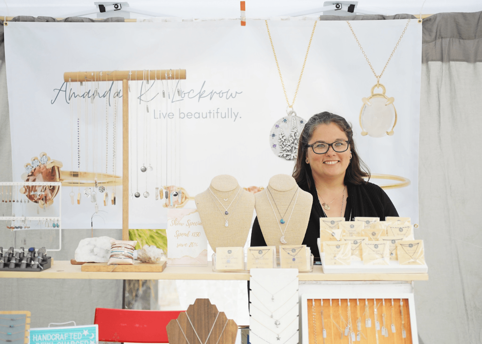 I’m Amanda and I have been creating jewelry ever since I took my first metalsmithing class in 2000. I fell in love with working with metal and it has been my passion ever since. Starting a business just happened when I graduated college and moved out to Los Angeles. I set up a bench in my apartment and started selling at shows when I wasn’t working my day job. I set up an Etsy shop in 2007 so I had a way for people to find me online. I love learning new things so I dove into learning how to run a business and all about crystals and stones.