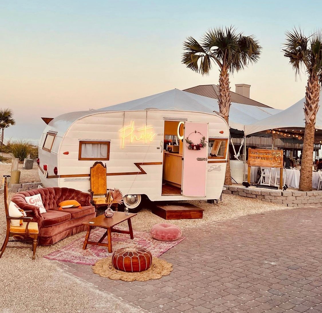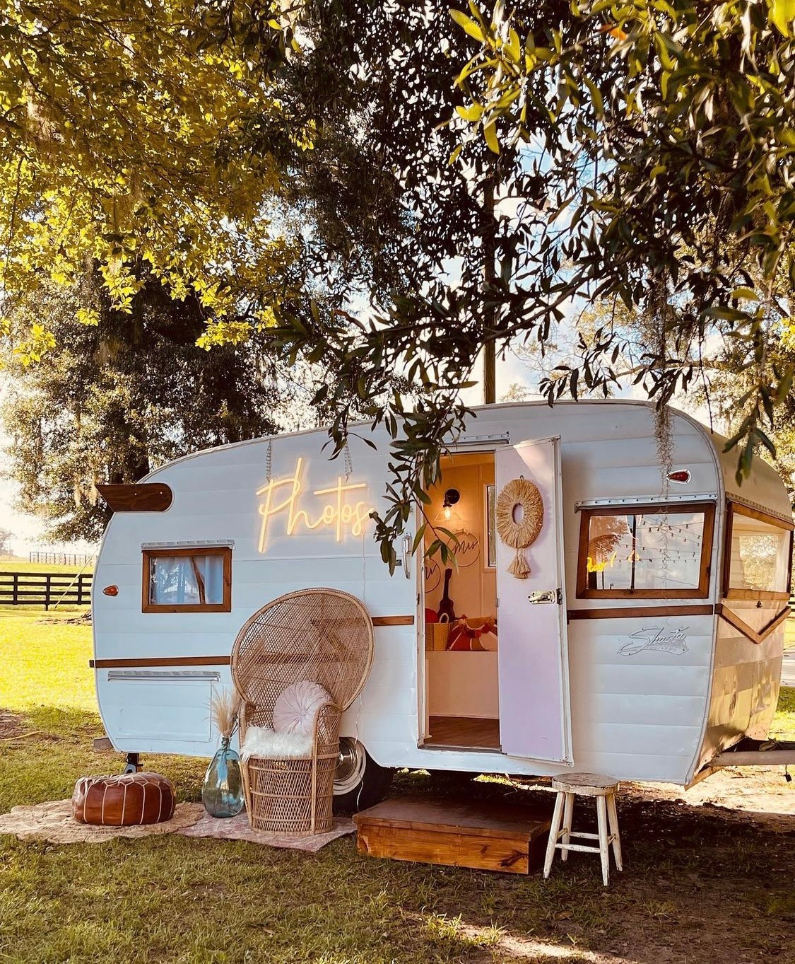 In the fall of 2021 we were blessed to add a second photo booth, this time inside a 63’ Shasta Camper. We also expanded and added a mobile bar also inside a Shasta Camper, under the name Zen Goat Event Co.