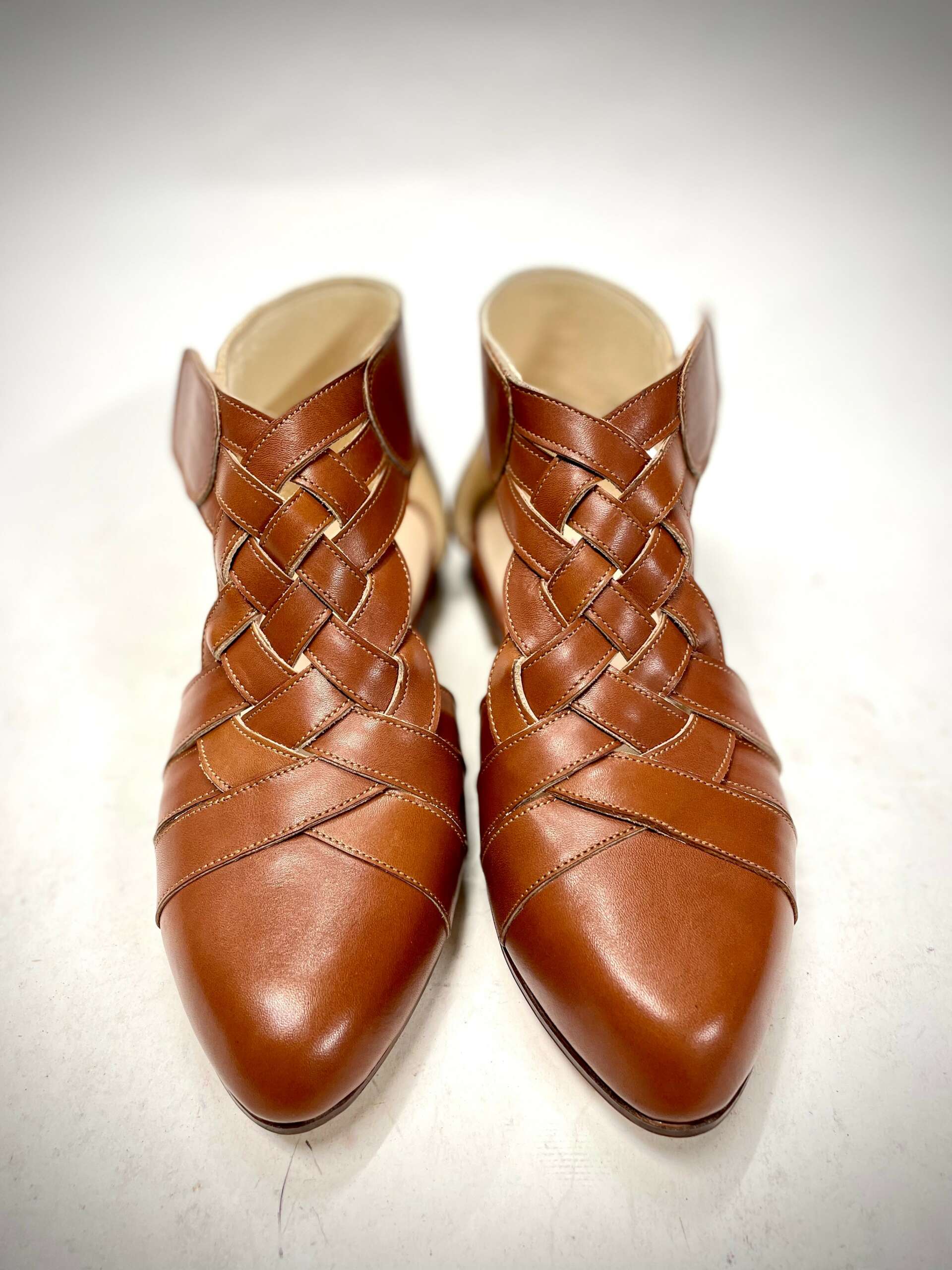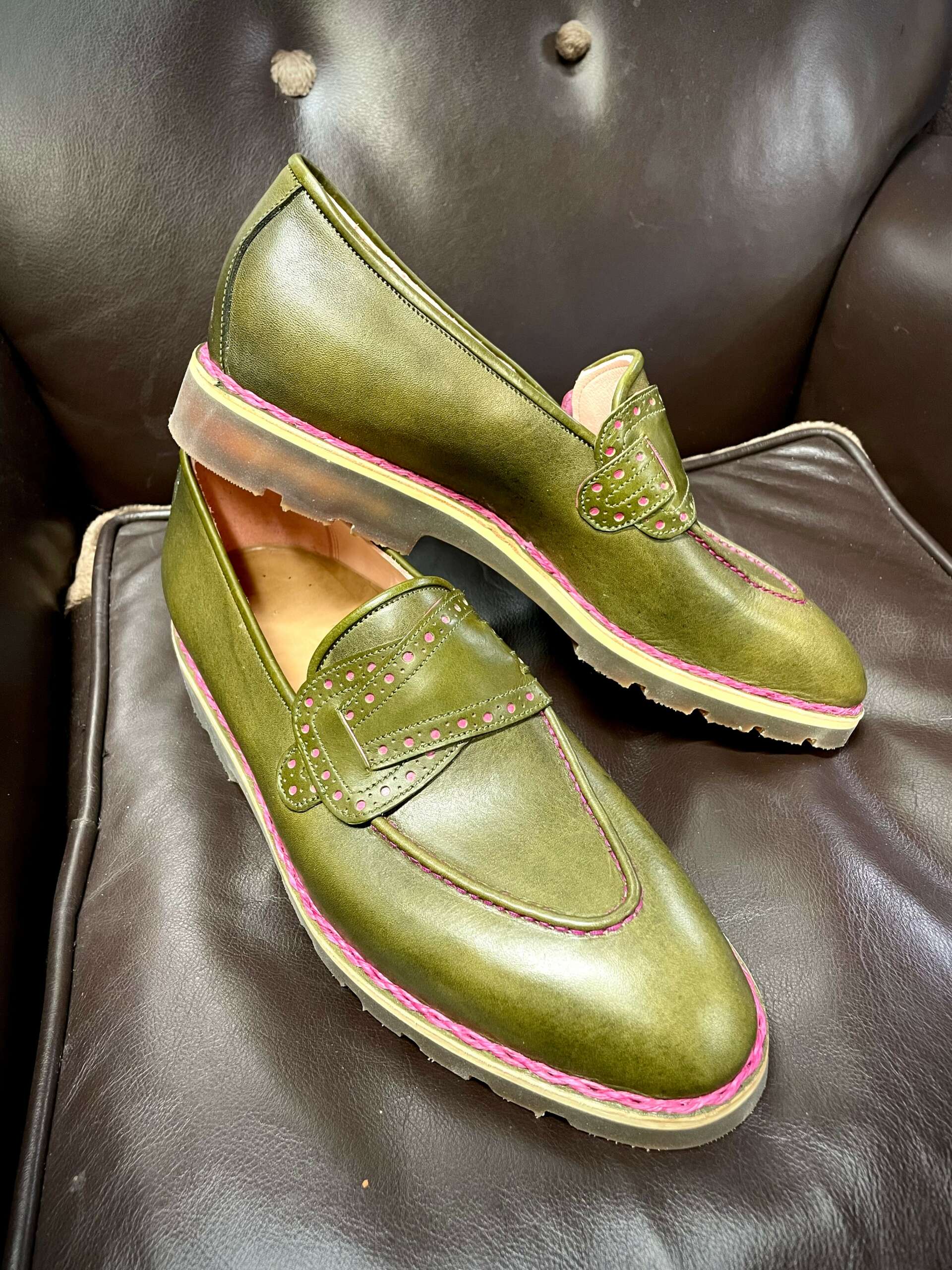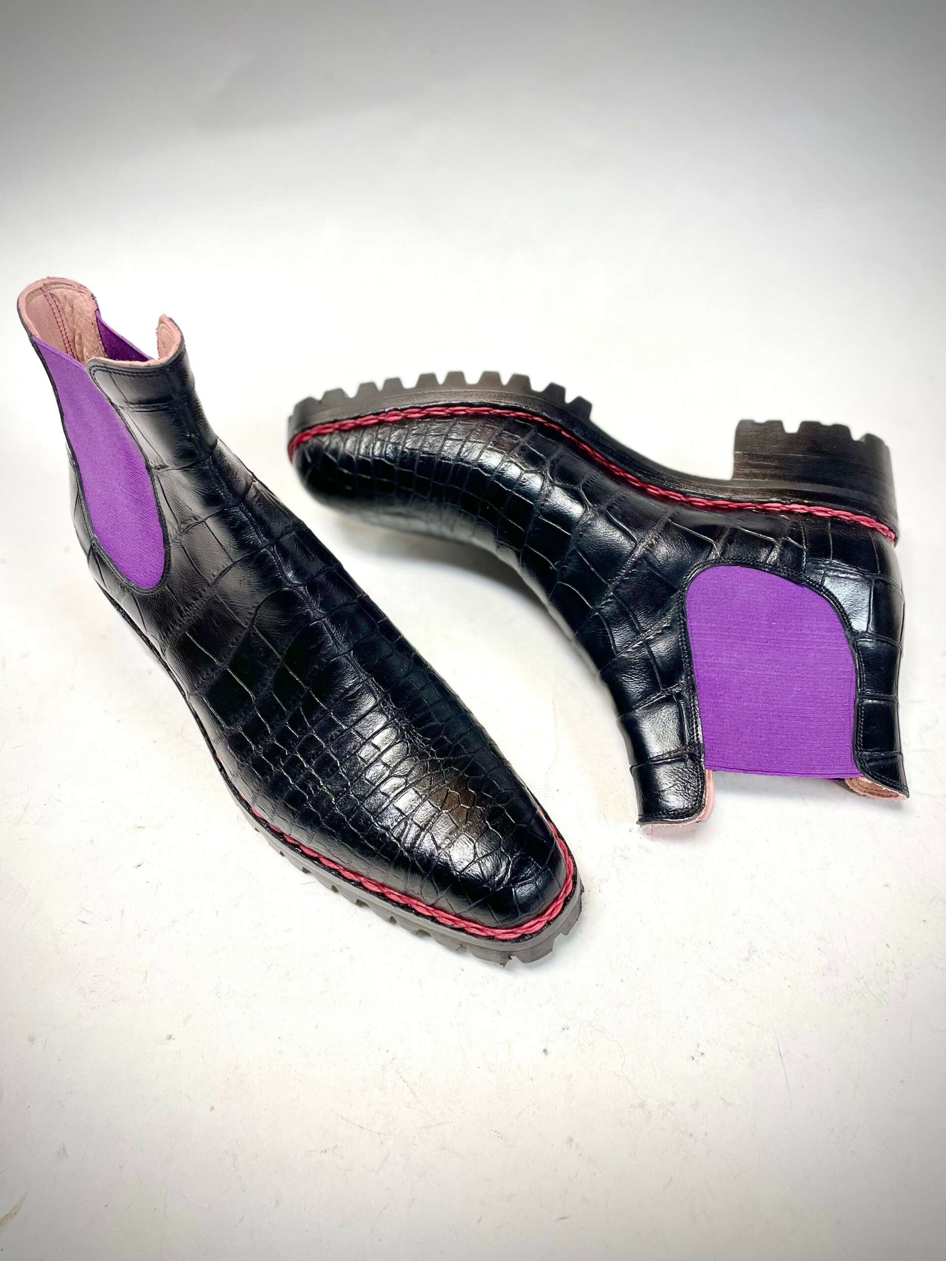 I make custom shoes and boots for individual clients. Each pair is completely unique, designed in collaboration with the client, and made to the measurements of their feet. I design, pattern, and make every element of each pair in my workshop from leather (although I do sometimes use rubber soles).