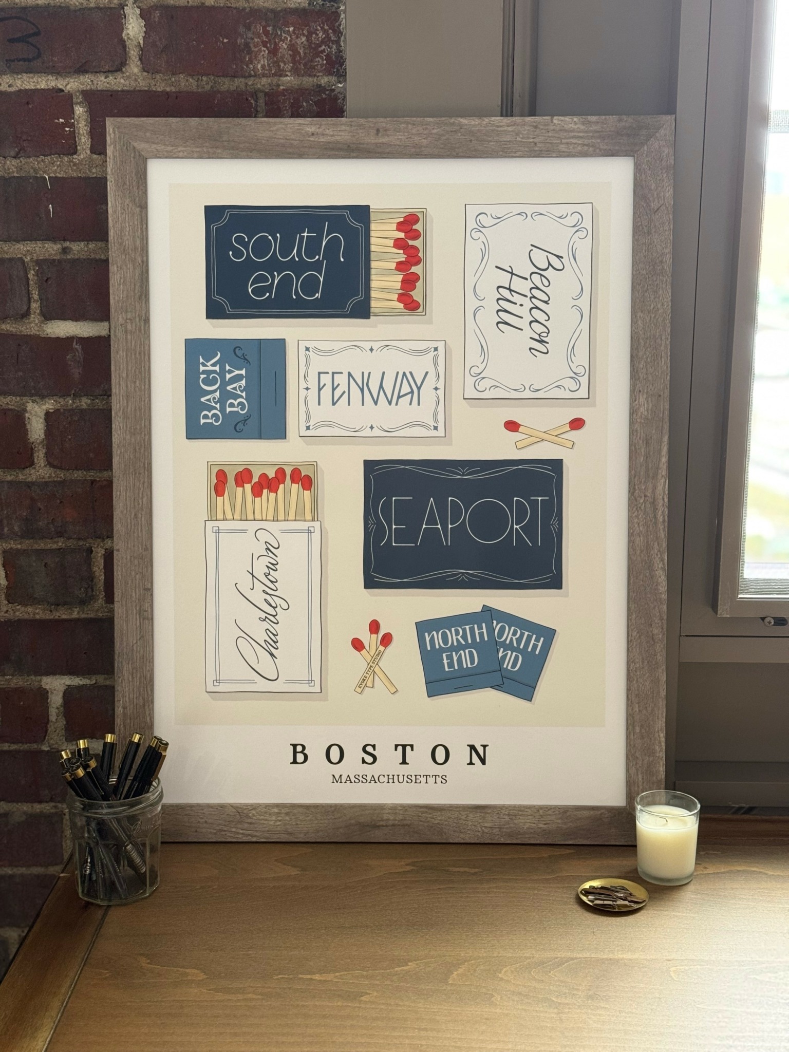 As a lettering artist, I use the shape of the letterforms to express the personality of that particular location. For example, Santa Monica has a fun and funky vibe to it, while Beacon Hill feels like stepping back in time. My work focuses on allowing the letters themselves to evoke the feel of the area they represent. The current collection focuses on cities I’ve lived and loved in the past, with plans for many more to come.