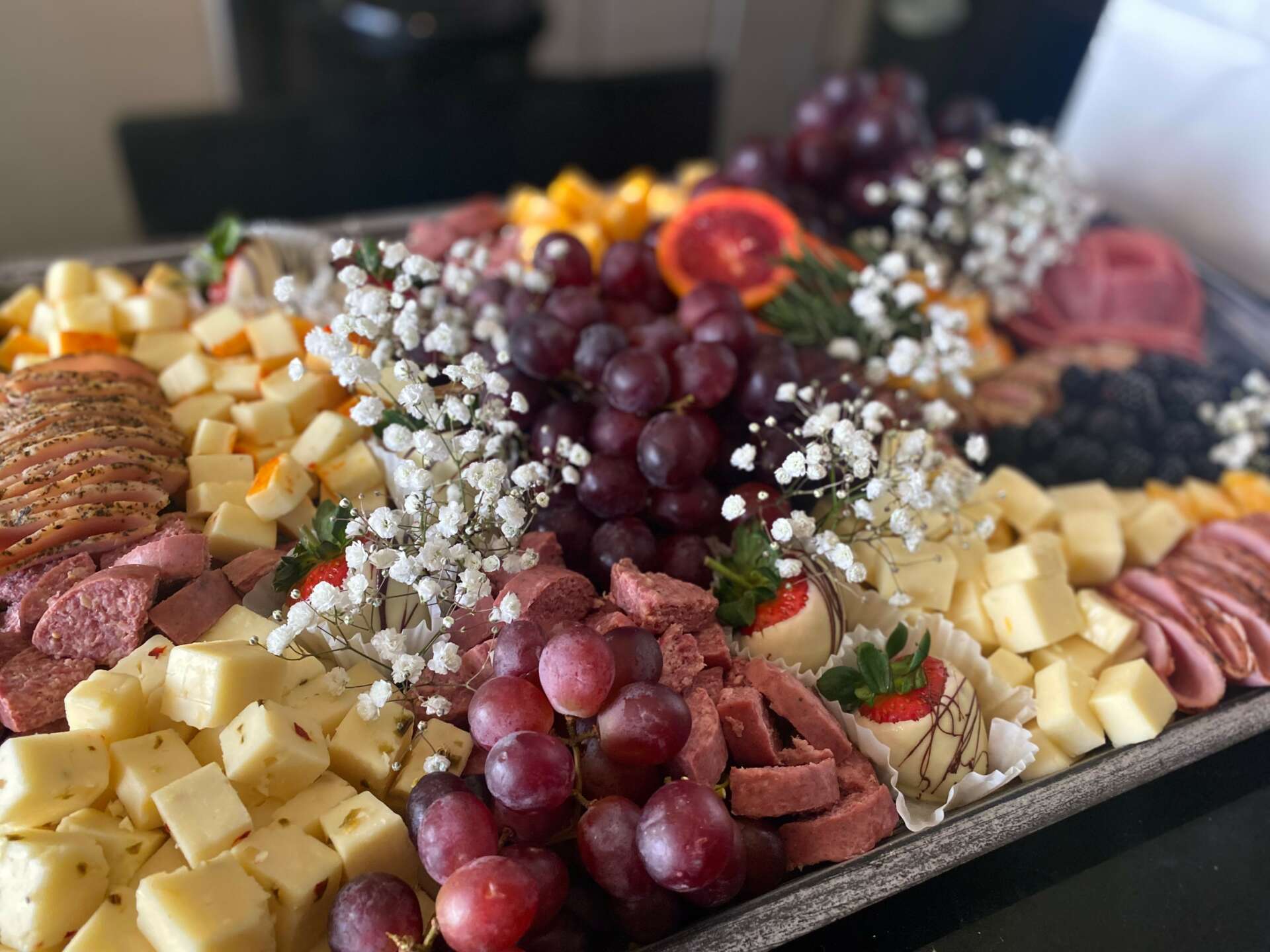 My brand is well known for the oasis of pre-arranged delicacies such as: fresh fruit platters, gourmet deli sandwiches, homemade dips, beautifully arranged grazing boards and grazing tables. Which is complementary to any affair.