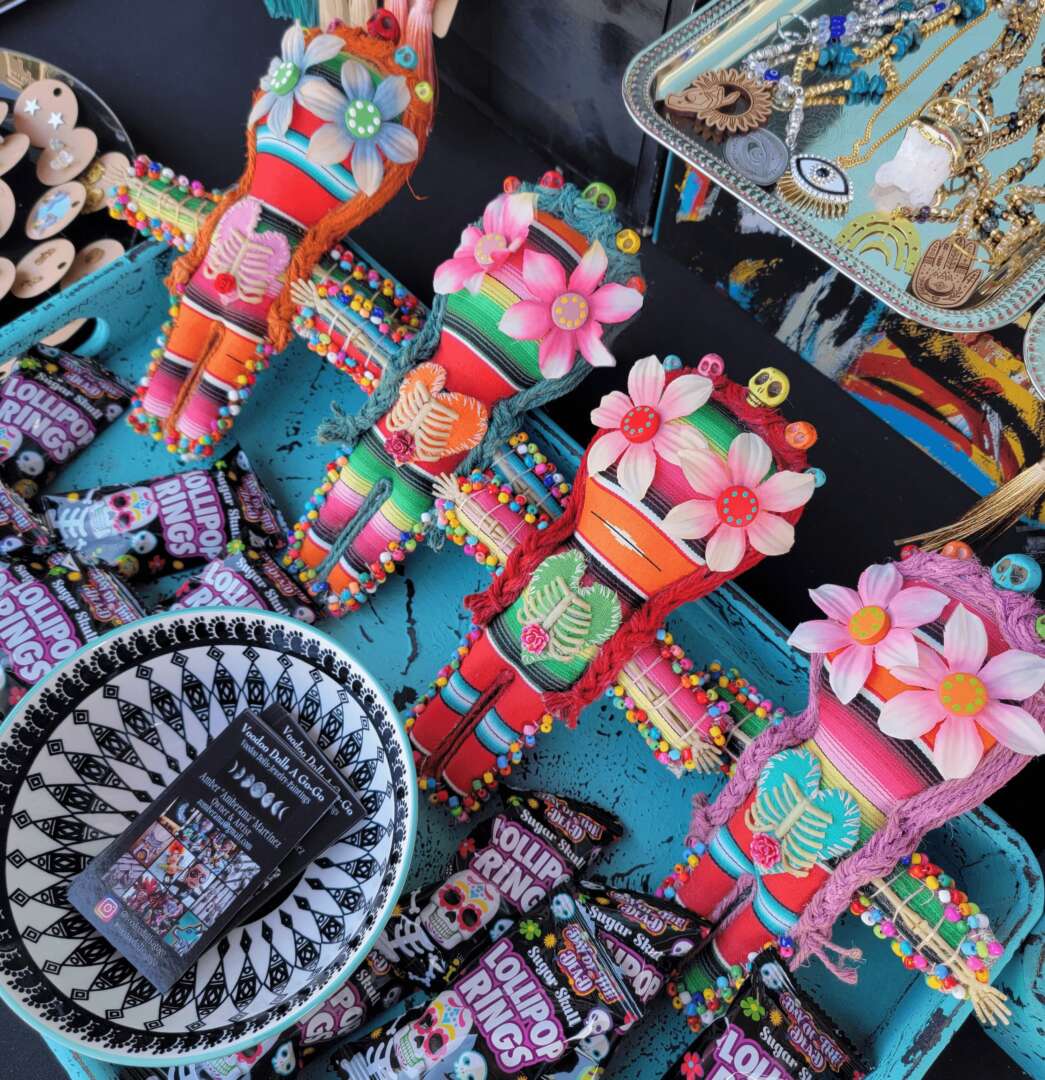 My love for art started as a child, so it’s always been a part of who I am. I am a product of two creative people, so in my mind, I was destined to create. I’ve always found myself doodling, tinkering, making things using other things, and making messes to create something, whether it makes sense or not. Paintings, dolls, and jewelry are my three go-tos when creating. I enjoy using paint, metal, fabric, resin, clay, wood, ethically sourced animal bones, and leather. I consider myself a sustainable creative. Recycling and upcycling materials are imperative to me. Some people may remember me as a fabric/doll artist going by the name, “Voodoo Dolls A Go-Go” but I have rebranded to include even more of my jewelry, now going by the name, “Bruja’s Bones”. It feels great to rebrand and include all of my creations.