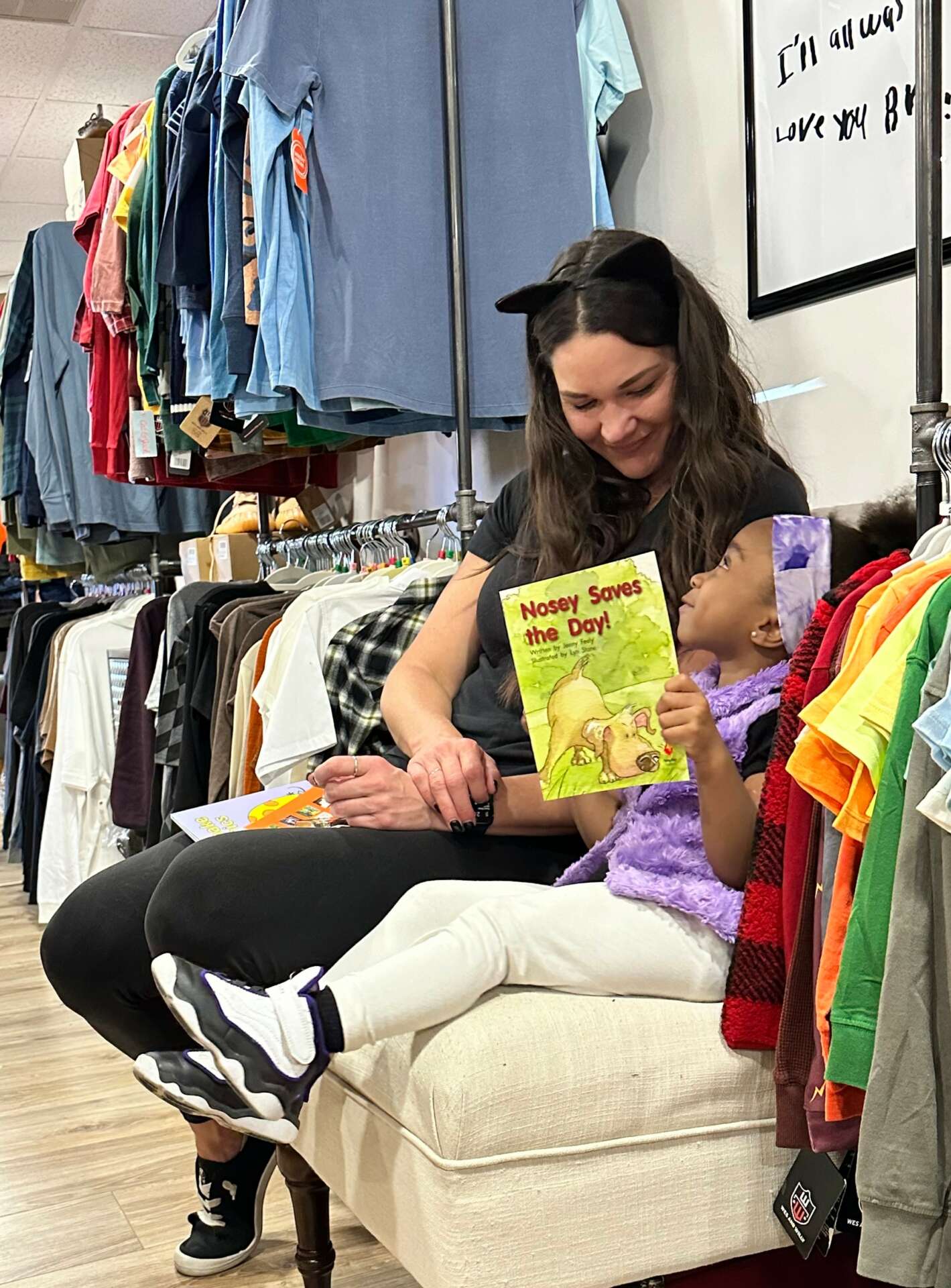 In 2019 we got licensed again in hopes of taking another placement. That summer we took placement of two siblings while concurrently dreaming and exploring other ways to support the community. I was always brought back to the day our little guy showed up to our doorstep with a single black trash bag full of ill fitting clothes. I knew through our experiences and conversations with other foster parents that Trevon’s story wasn’t unique unfortunately. And this thought of having a place that would help with basic needs wouldn’t escape me. As I was scrolling through instagram one day I came across an organization on the east coast that provided children in foster care with free clothing. A light bulb suddenly went off – and from that day forward I promised myself I was going to do whatever it took to bring a beautiful boutique to the foster care community – no matter how crazy my family and friends thought I was. If they could do it, so could I. I dreamed of a boutique full of love and dignity. A place that looked and felt like love. From the clothes on the racks and the words on the wall that read “the world needs who you were made to be” to a dressing room sign that says “be you bravely.” I wanted every inch of the space to scream LOVE.