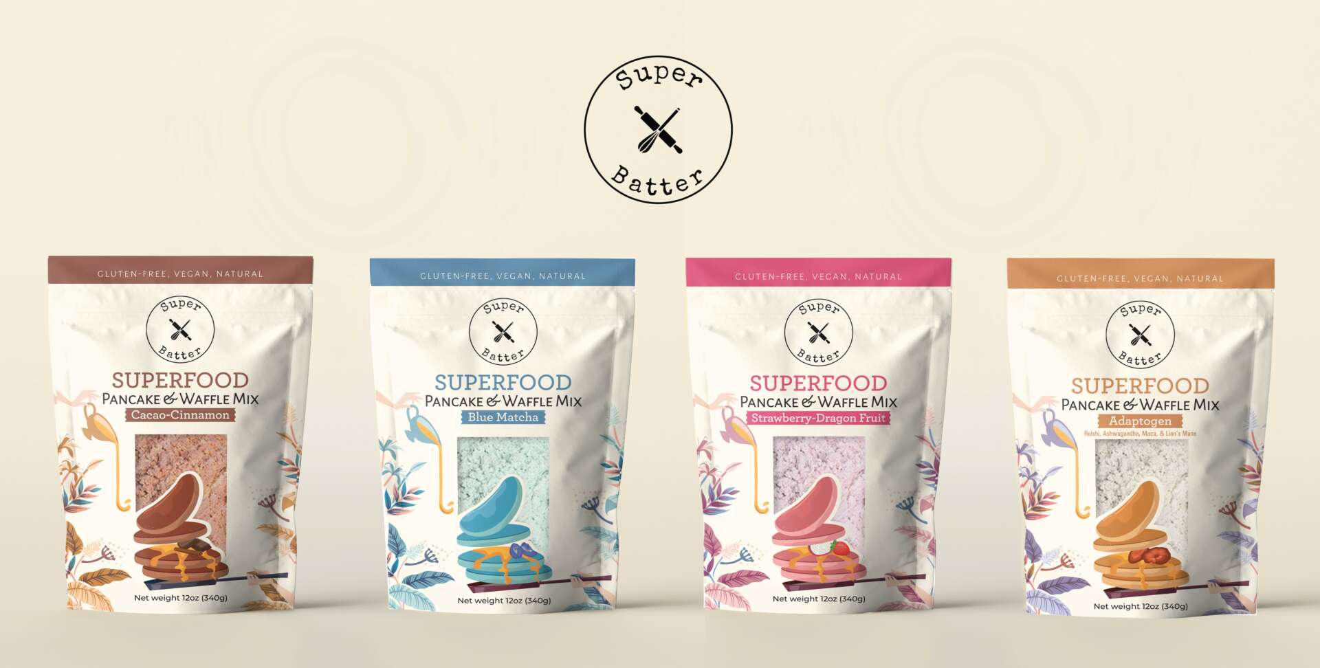 We started Super Batter in 2020 at the beginning of the pandemic. Super Batter is a superfood pancake & waffle mix line that is vegan, gluten-free, dairy-free, nut-free and comes in a line of delicious flavors: Blue Matcha, Strawberry Dragonfruit, Adaptogen, and Cacao-Cinnamon.