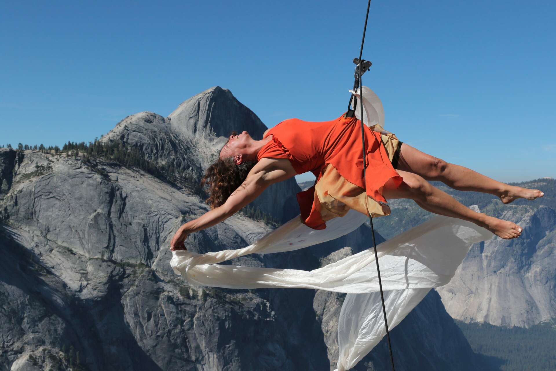 The most rewarding part of being a creative artist is the moments when you genuinely touch someone with your work. While I am so lucky to have many stories, here are two that stand out. We were performing at a festival in Detroit, Michigan on a modestly tall building which has the advantage that the audience can more easily see and connect with the performers who are closer to the audience than they would be if they were on a 300-foot skyscraper. After the performance, during what we call a “meet and greet” where we gather at the base of the wall to talk to the audience, a five-year-old girl approached me. Her eyes were as big as saucers and she pushed past her shyness, holding her mom’s hand to greet me. Her mom encouraged her, “Tell her what you told me, honey.” The tiny girl somewhat breathlessly said, ” I did not know you could be THAT and I want to be that when I grow up.” I asked what “that” was to which she replied. ” A sky dancer.” The second story took place when we were doing a big project in the Sierra, crossing the mountain range as a performance creating site-specific work along the way over 18 days. In the middle of the journey, the media outlet 20/20 came to cover the project and while their coverage of it was postponed for ten months that year because of 9/11, it aired in the spring of 2002. A year after that story aired, I received an email from a woman who told me the work she saw on 20/20 of Project Bandaloop (what we were called then) saved her life. She was distraught, depressed, at wit’s end, and planning to kill herself the night she saw us dancing a thousand feet up on a cliff to celebrate the human spirit and a sense of possibility. She told me that seeing our joy, our grace, and our courage made something in her shift profoundly. She had since turned things around for herself and was doing much better and had written to let me know and to thank me. The story did not end there. Two or three years after that, she wrote me again to say that her daughter also suffered from depression and that because she wanted to help her daughter and to pass forward the inspiration she had felt watching us dance on a cliff, she had started a non-profit whose mission it was to offer resources to young people suffering from depression.