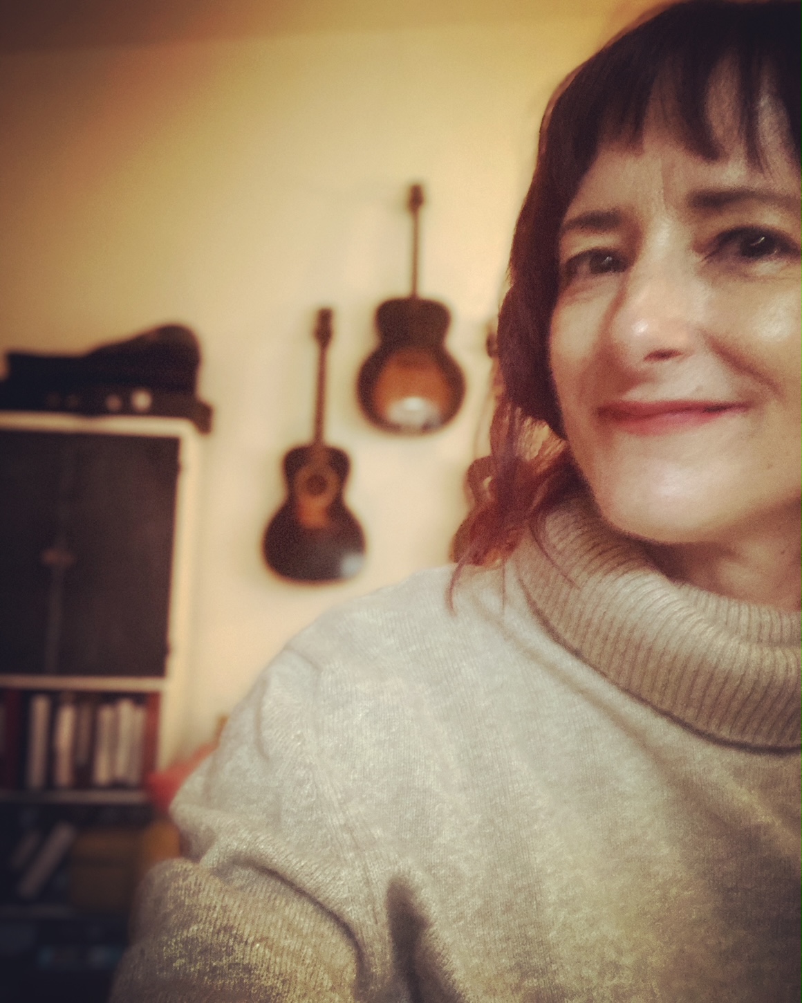 From my earliest memories as a child, I would be carried away by hearing music on the radio or coming through an older sibling’s bedroom door. I was brought to traditional folk concerts as a child in Chicago, and I started listening to experimental free-form college radio at the bottom of the dial as a young teen. I wasn’t encouraged to take music lessons, which would have given me more technical proficiency and confidence. But I would gradually realize that my love for music–the way I felt it speak to me, how it could explore mysterious feelings, how it could immerse me in another world–would translate into making original music myself. I mustered the courage to pick up my brother’s guitar at age 19, and taught myself how to play by ear by listening to my favorote songs. The first song I leard the whole way through was “Space Oddity” by David Bowie. That song has some non-traditional chords, so I was exposed to music theory early on. I wrote my first song soon after, after a heartbreak, and never stopped. I started recording songs and experimenting with sound collage at home with a 4-track cassette recorder. I began experimenting with open guitar tunings early in my songwriting process, which opened up an intuitive relationship with chordal movement and melody. Getting to know my singing voice was a slow, sometimes grueling process of learning how to get out of the way and trust that the music would come out of me the way it was meant to.